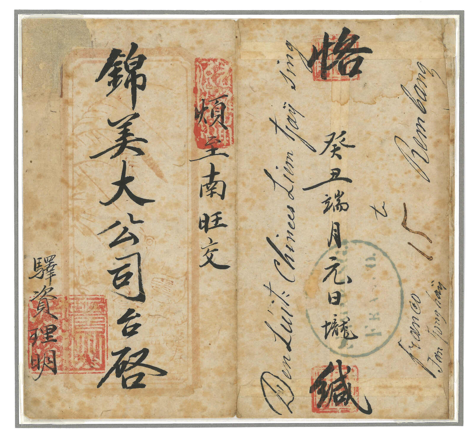 1860年代一組三件荷屬東印度僑批總包,分別自Passaroeang或三寶壟寄南旺,鈐“ONGEFRANKEERD”或“FRANCO” 橢圓形戳記。當時小地方的華僑先將批款寄往南旺,南旺的批局再寄回中國。一組十分難得的早期荷屬東印度僑批。(Image 1) (Image 2) (Image 3)