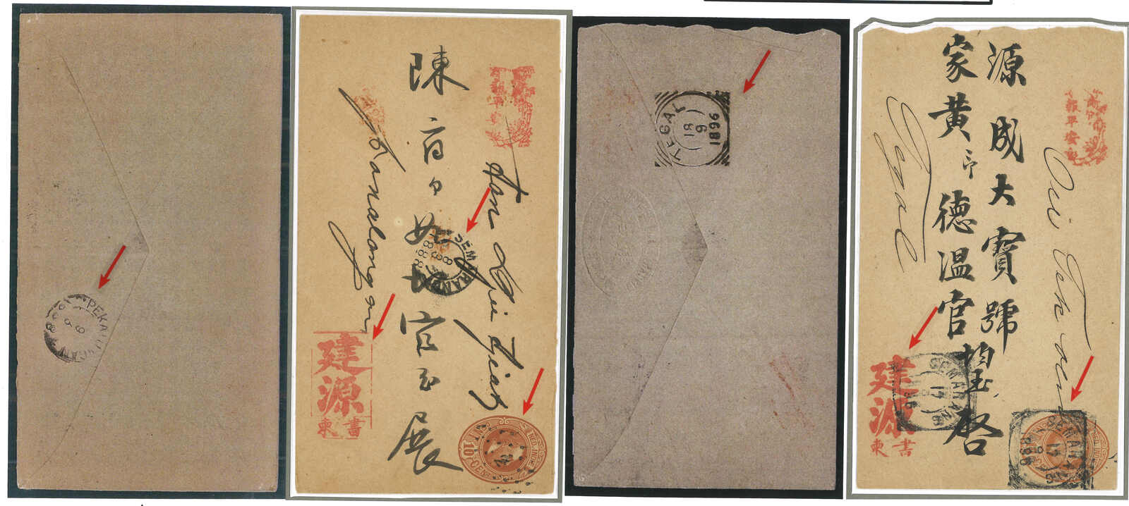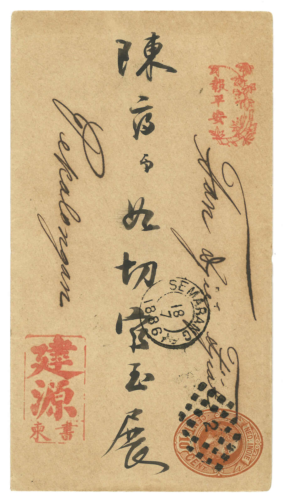 3857 image1884-1888 a group of 4 Dutch East Indies 10c stationery covers from Madioen and Semarang, applied with diamond obliterator, cds and company seal. Early Qiaopiju correspondence from towns outside Semarang are rather scarce.