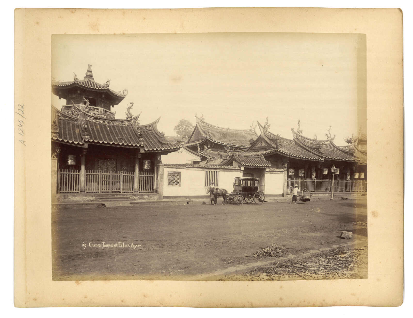 一組四張新加坡相片,分別貼於兩張硬卡之正背面(26 x 34厘米),展示了華人廟寺、城市風光及原住民婦女等。(Image 1)