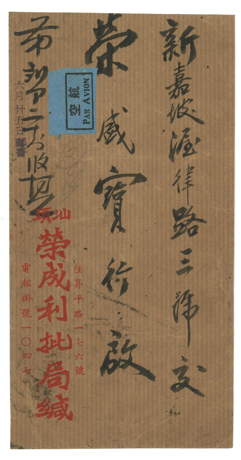 1947 (26 May) Huipi (receipt of remittance) bulk mail stating containing 19 letters from Swatow to Singapore, f.w. SYS x21, in total of $42,750 (Huipi concessionary half rate $550 + airmail rate $1700 per letter), tied by
