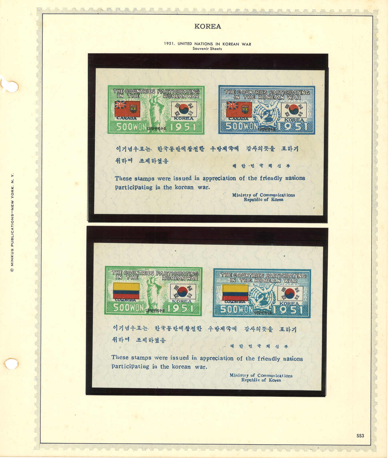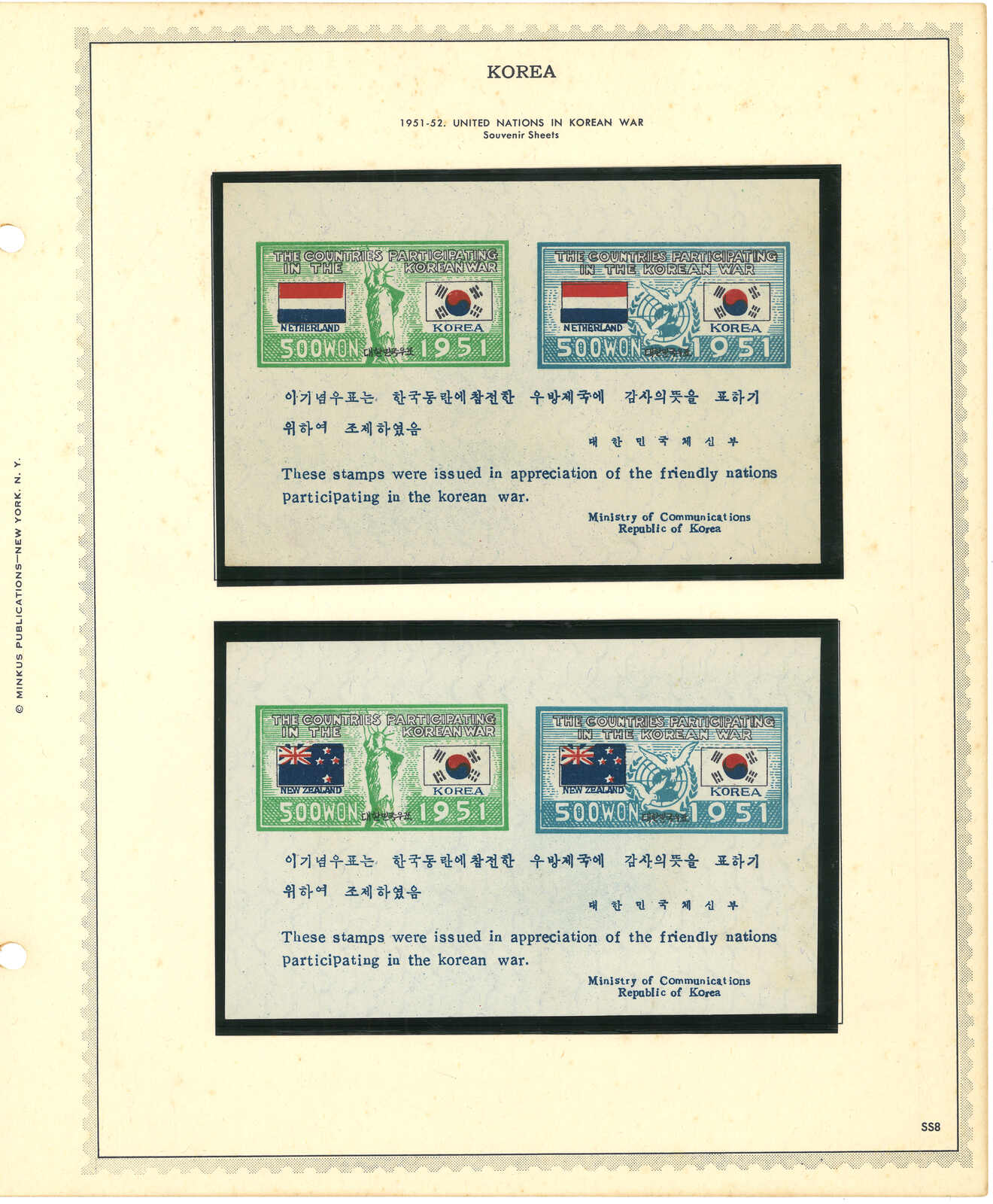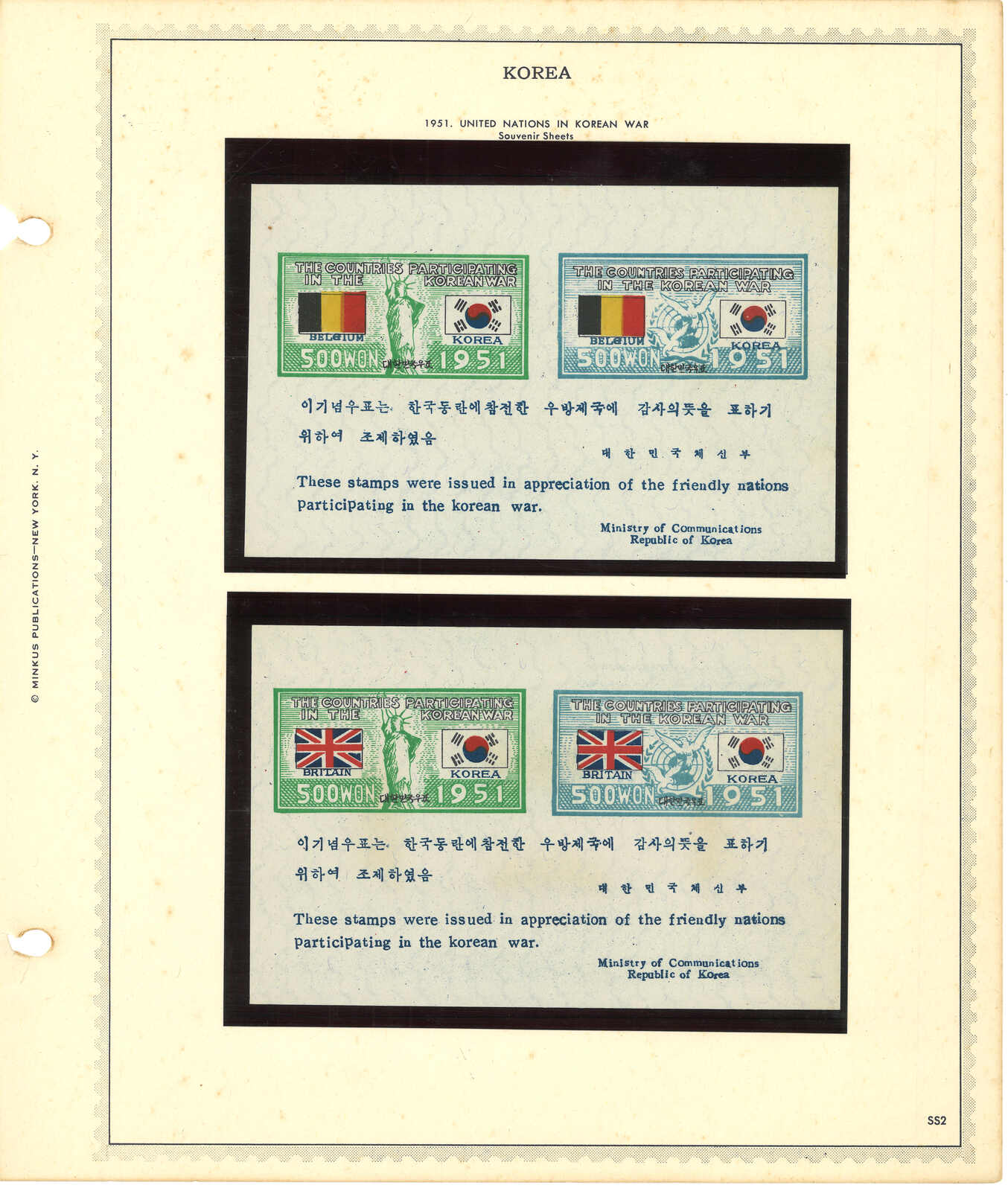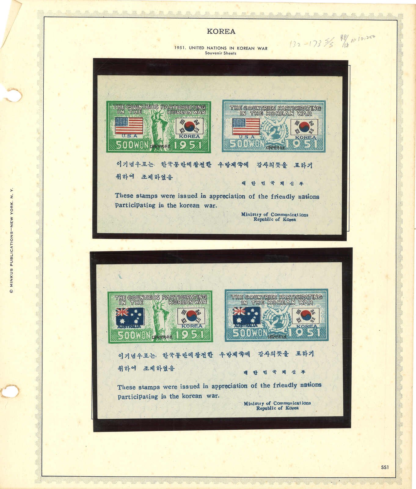 1951年一組“參與韓戰友好國家”郵票新,21個國家齊全(欠修正國旗後的意大利第三版),包括綠色及藍色票。均帶邊紙。(Image 1)