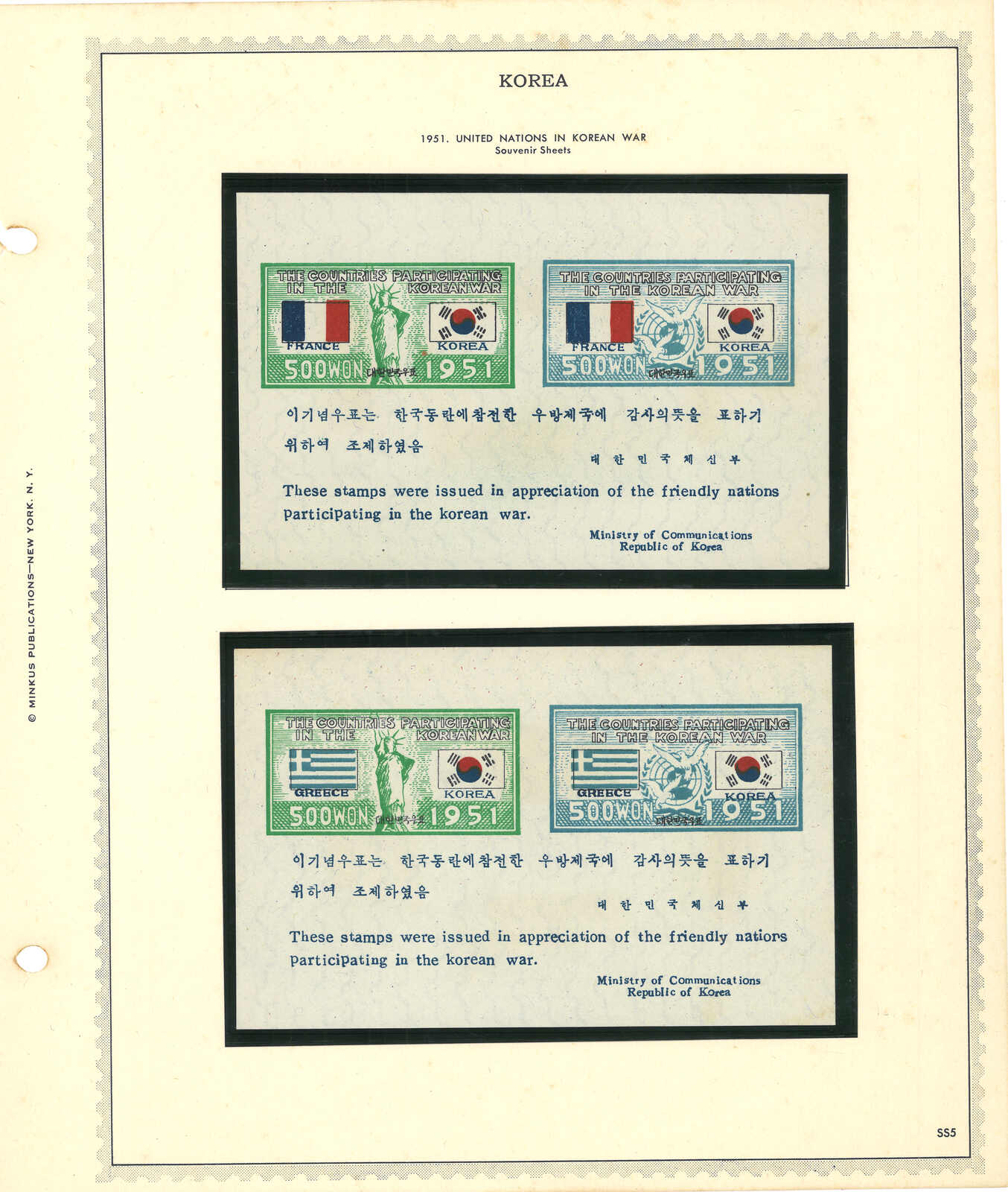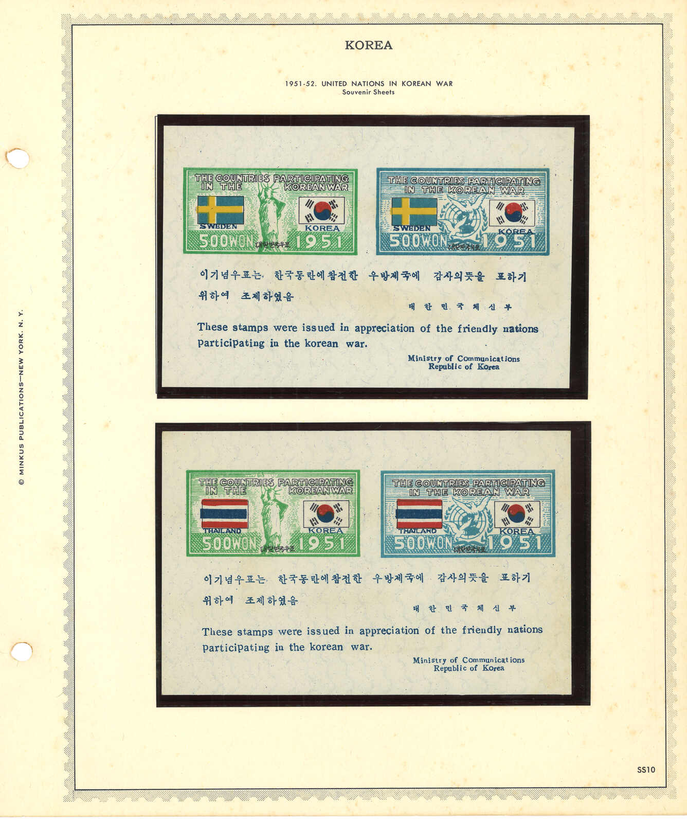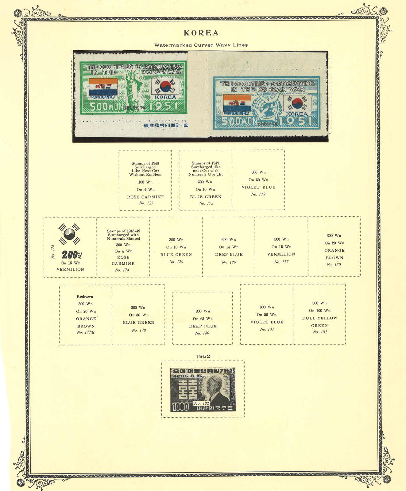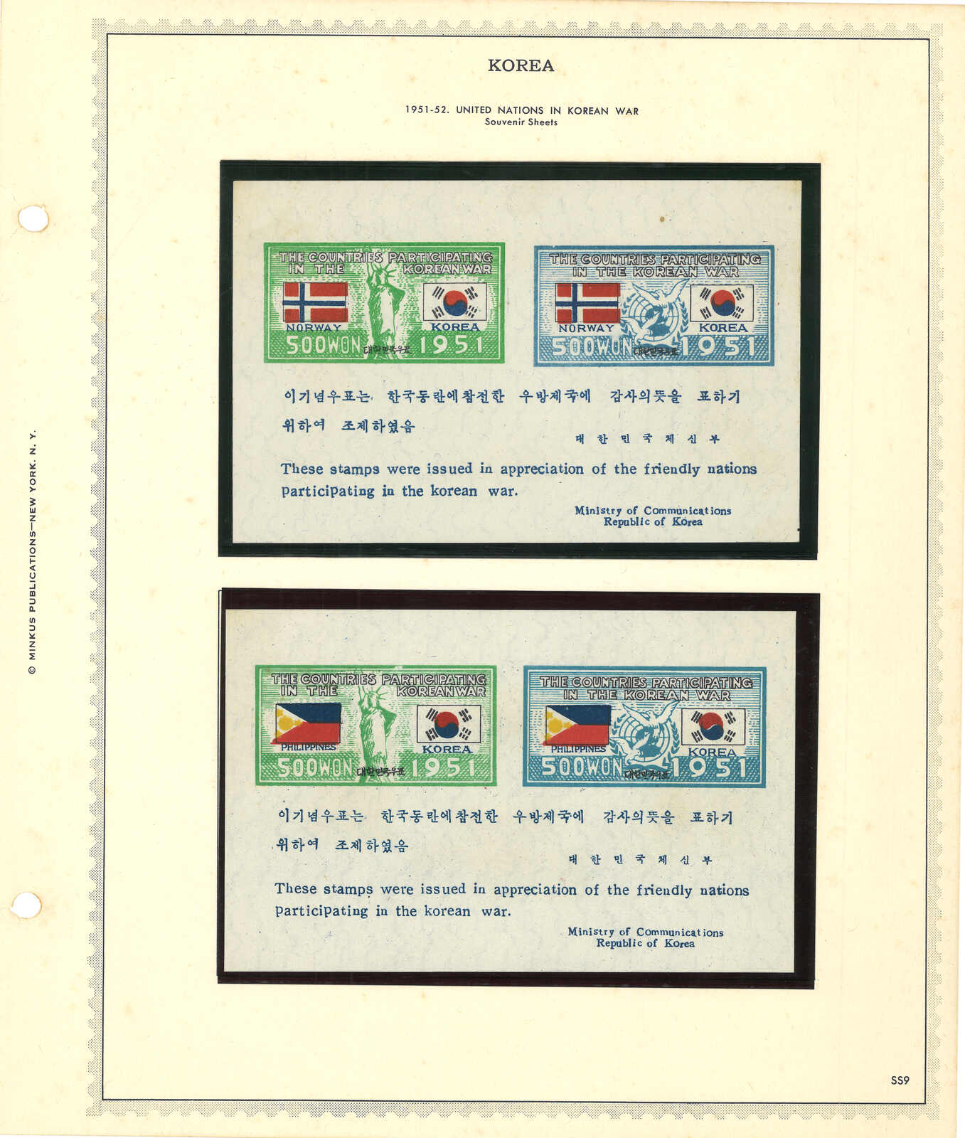 1951年一組“參與韓戰友好國家”郵票新,21個國家齊全(欠修正國旗後的意大利第三版),包括綠色及藍色票。均帶邊紙。(Image 1)