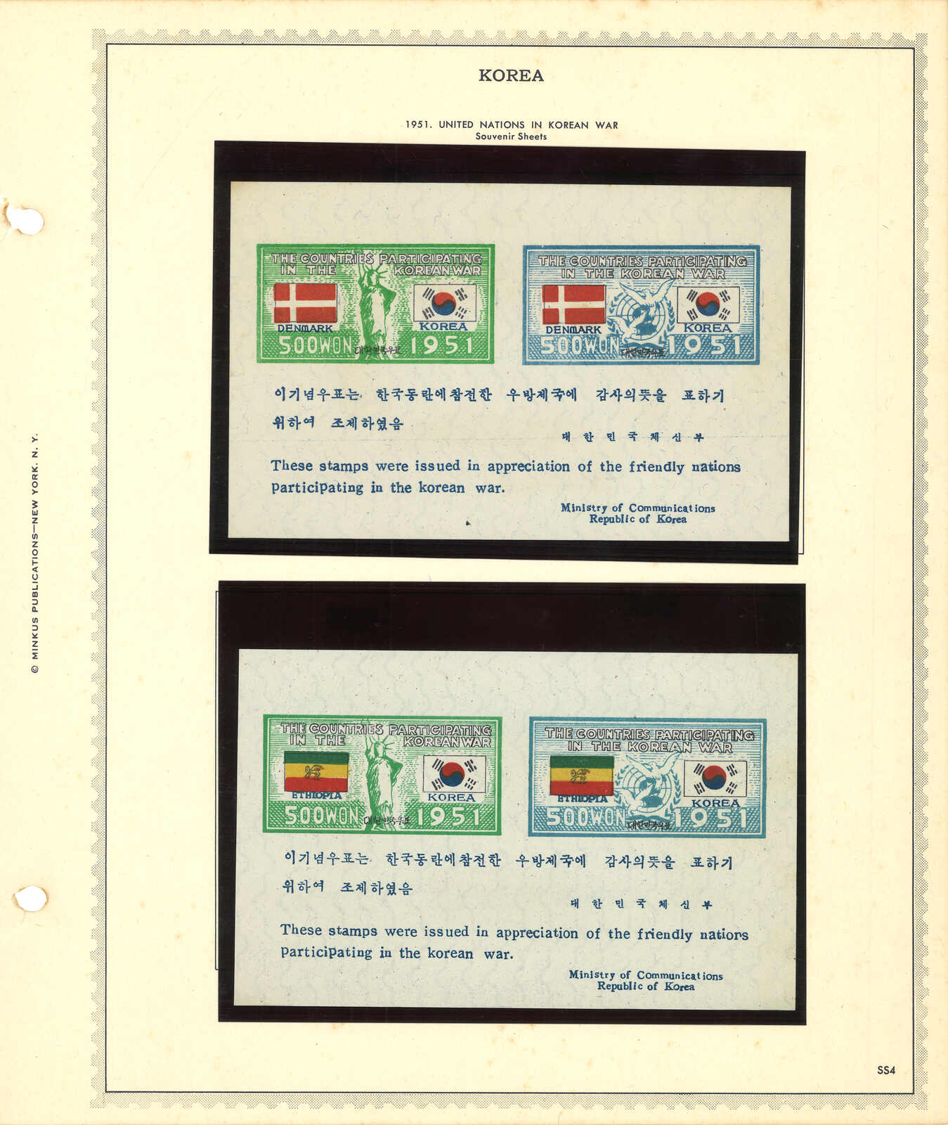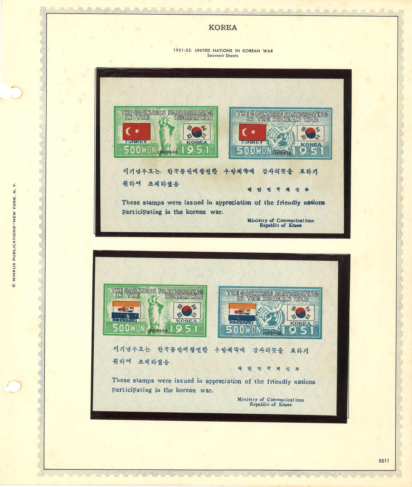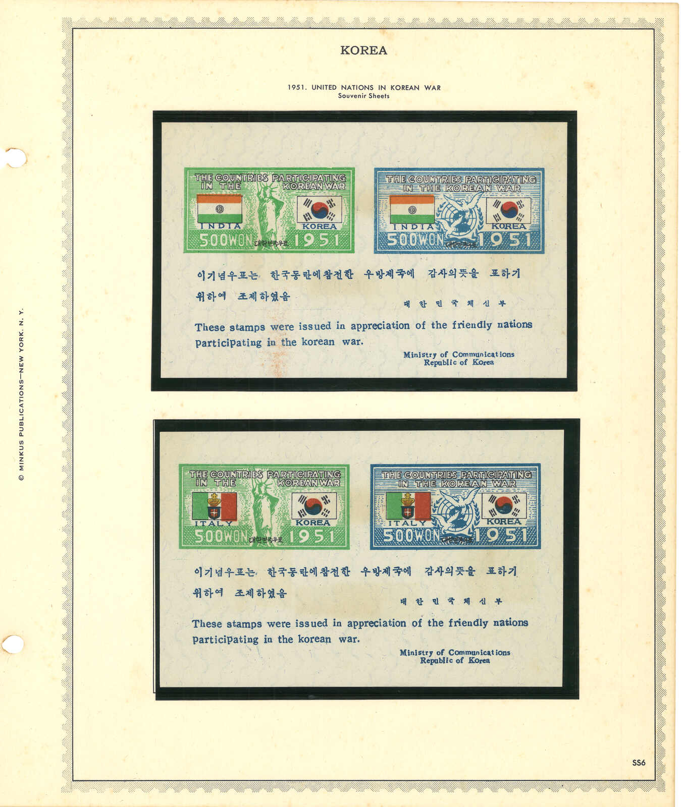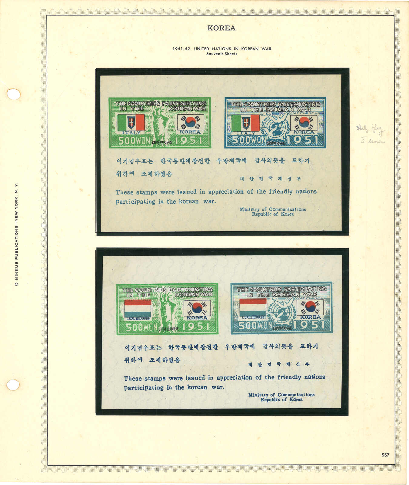 1951 Friendly Nations Participated in Korean War (horizontal wavy line paper) presentation sheet set, containing 21 countries including the modified Italy flag design. All mint