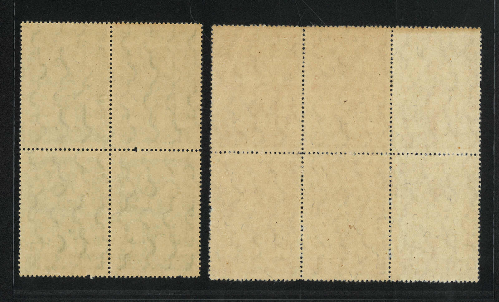 1955 10th Anniv of Liberation complete set in multiples (KPDA 178-179), 40w in block of 4 and 100w in block of 6. MNH.