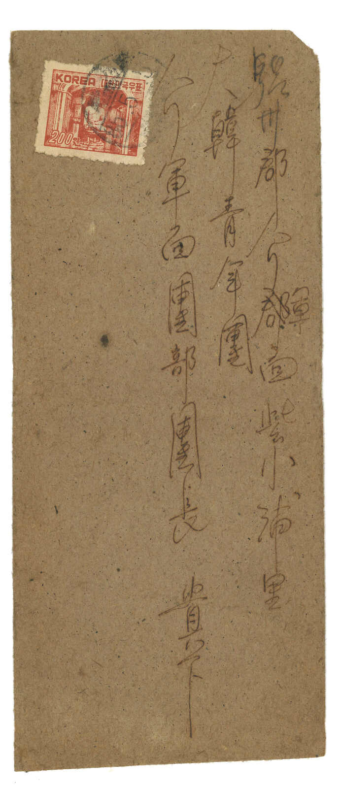 4288年(1955)2月28日谷城寄淳昌,貼KOMSCO波浪紋水印忠烈祠2000圜,銷全南谷城日戳。2000圜郵資於1955年1月4日至1955年8月8日生效。(Image 1)