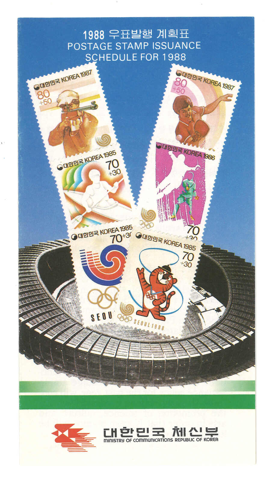 2884 image1988 an assorted group of Seoul Olympic stamps, FDC, postcard and presentation folders.