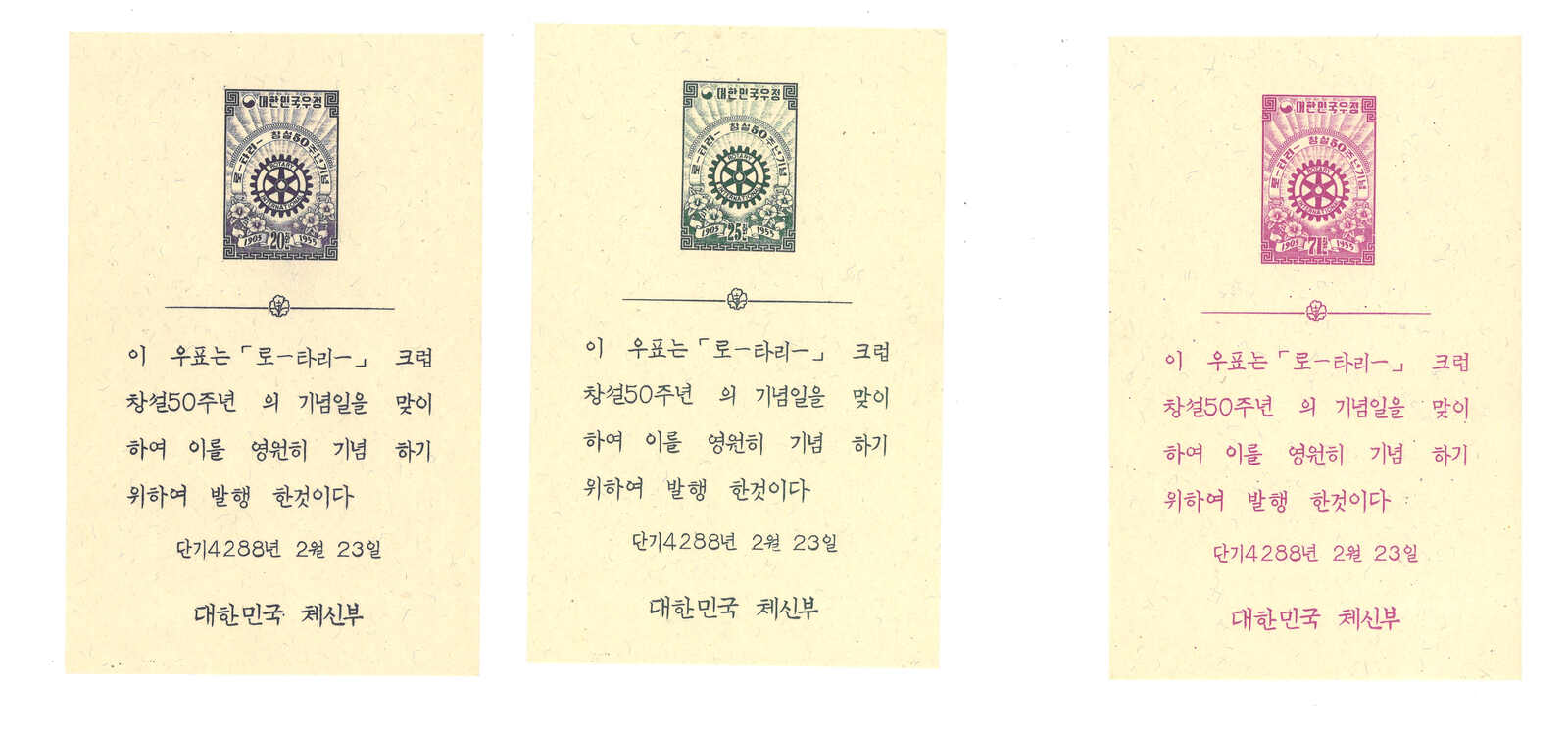 1955年國際扶輪會成立五十週年樣張一套三張(KPDA C51-53),十分稀罕得。(Image 1)