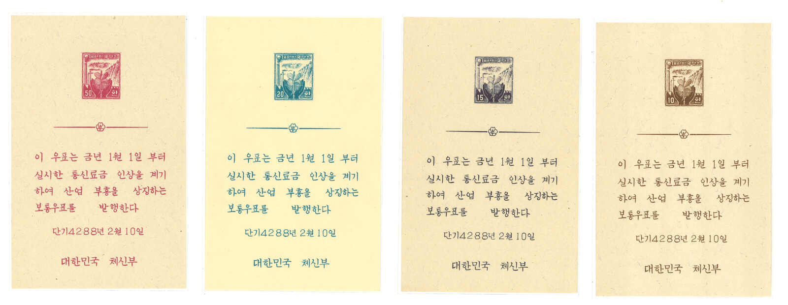 1955年再工業化紀念張一套四張新(KPDA 19-22),無貼。(Image 1)