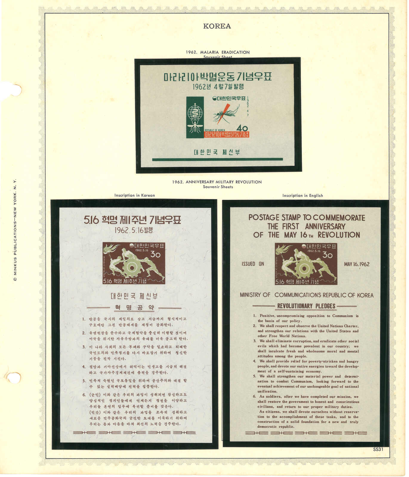 2879 image1962 Malaria Eradication Campaign and 1st Anniv of May 16th Revolution S/S (KPDA 323a, 326-328a), latter with both English and Korean S/S. MNH.