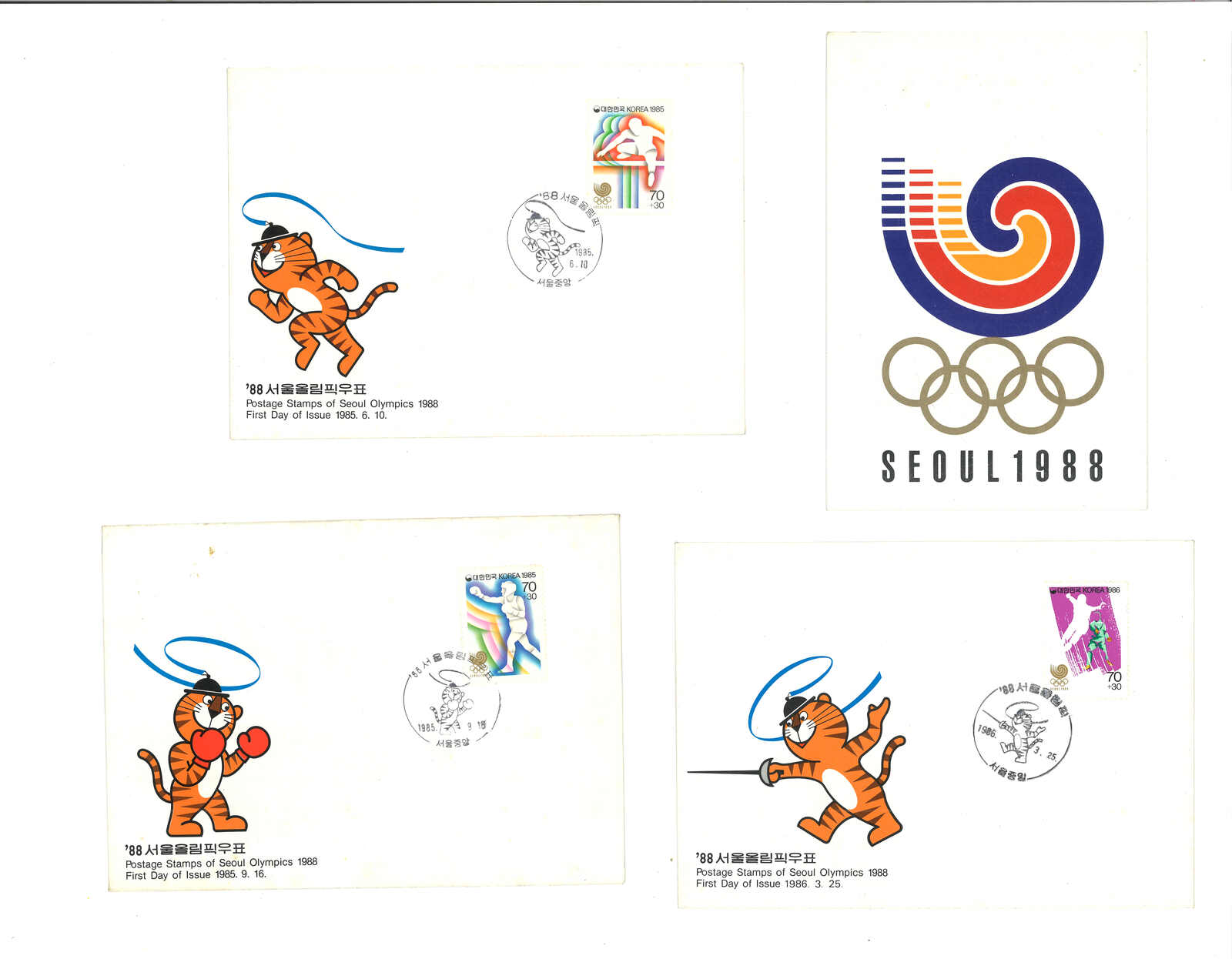 1988年一組漢城奧運郵票、首日封、明信片及折套。(Image 1) (Image 2) (Image 3)