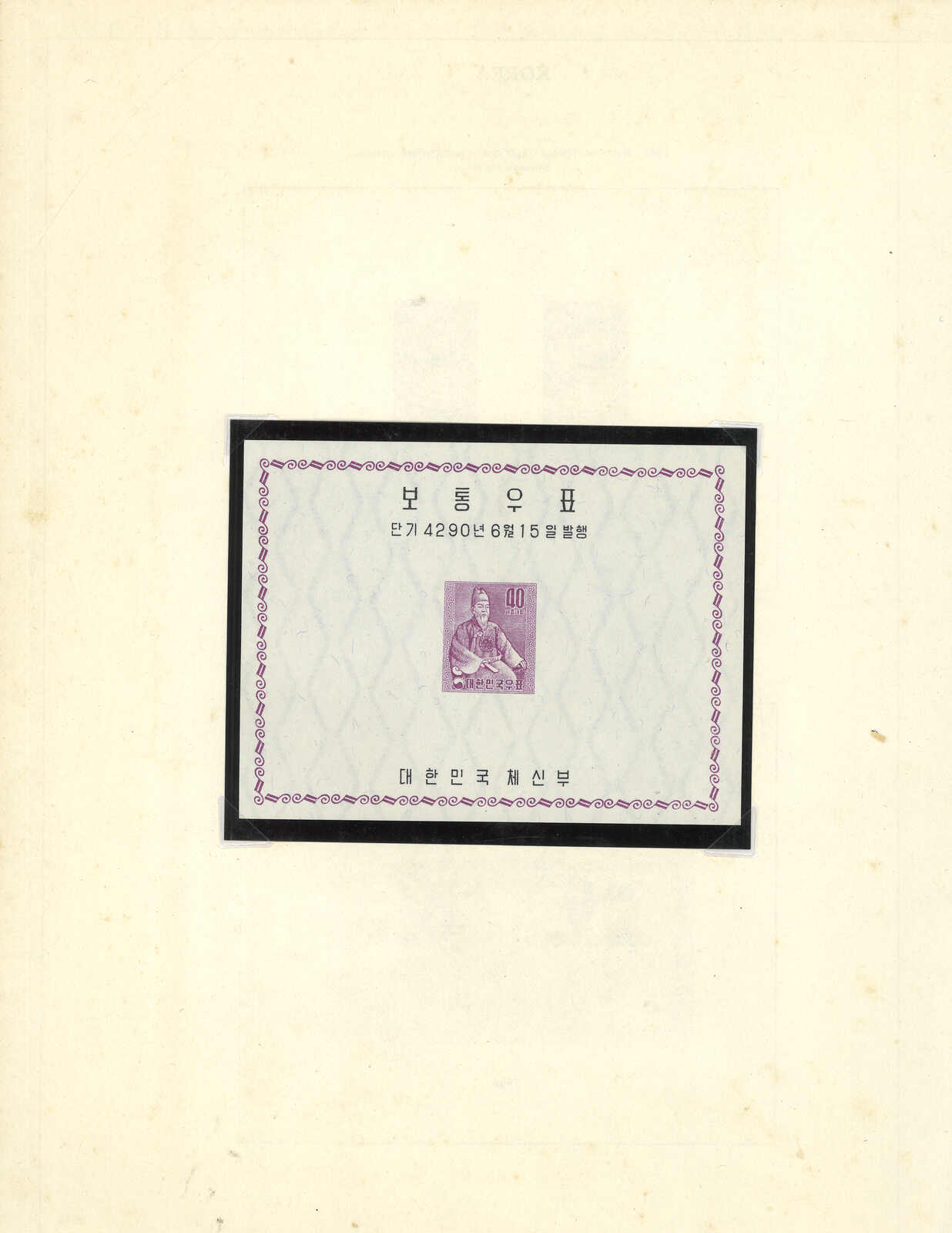 1957年韓美友好條約小型張新(KPDA 243a),無貼上品。此小型張發行僅兩千張,韓國小型張之大珍品。(Image 1)