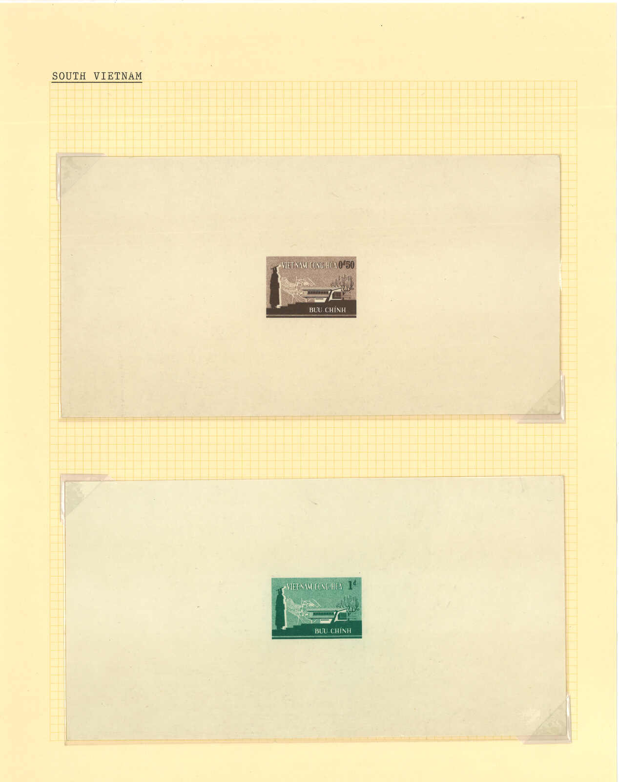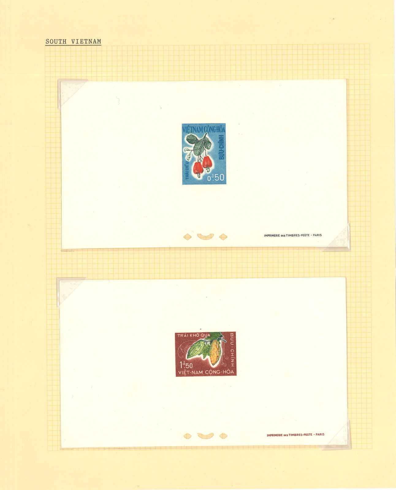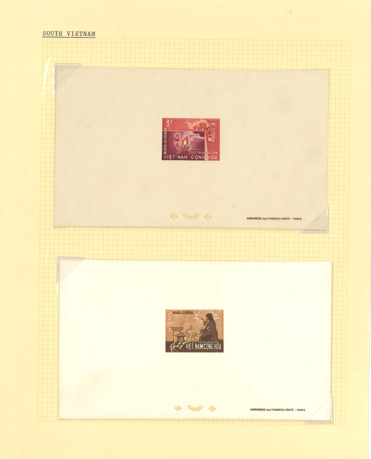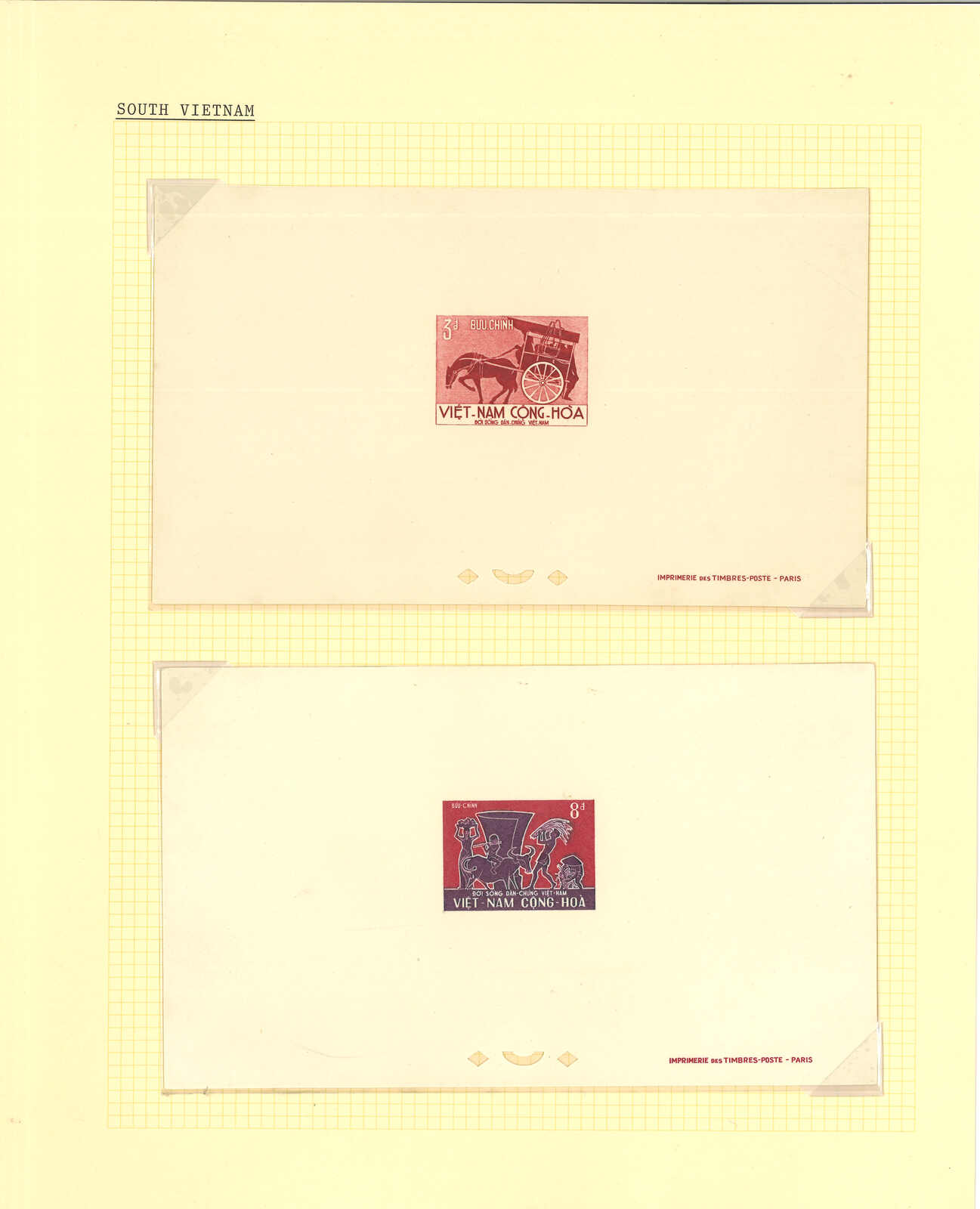 1966至1967年一組十套南越郵票之豪華試印張或無齒票,包括古代樂器、日內瓦世衛大樓、未發行之士兵票等。均無貼上品。(Image 1) (Image 2) (Image 3) (Image 4) (Image 5) (Image 6) (Image 7) (Image 8) (Image 9) (Image 10) (Image 11) (Image 12) (Image 13) (Image 14) (Image 15) (Image 16) (Image 17) (Image 18) (Image 19) (Image 20) (Image 21)
