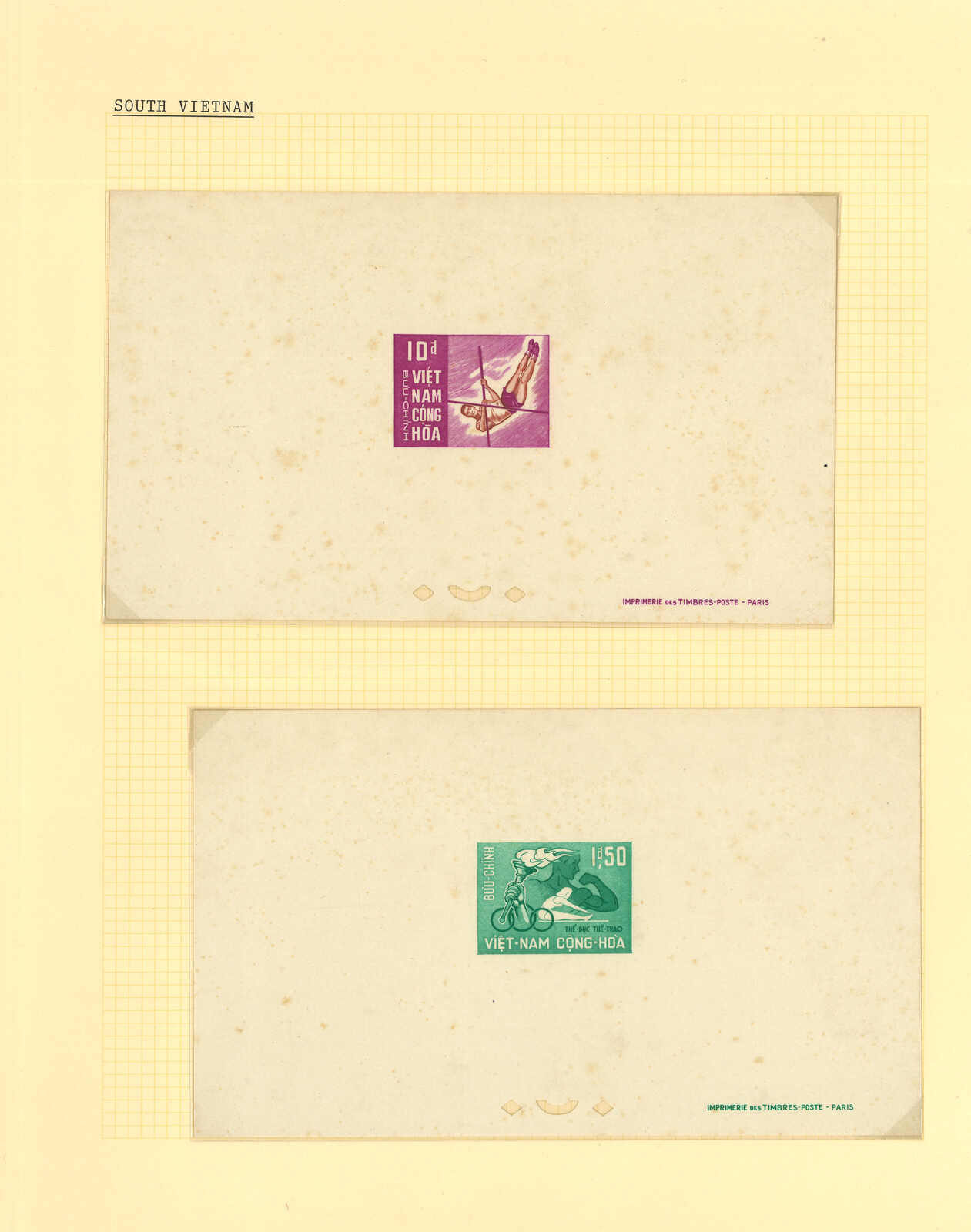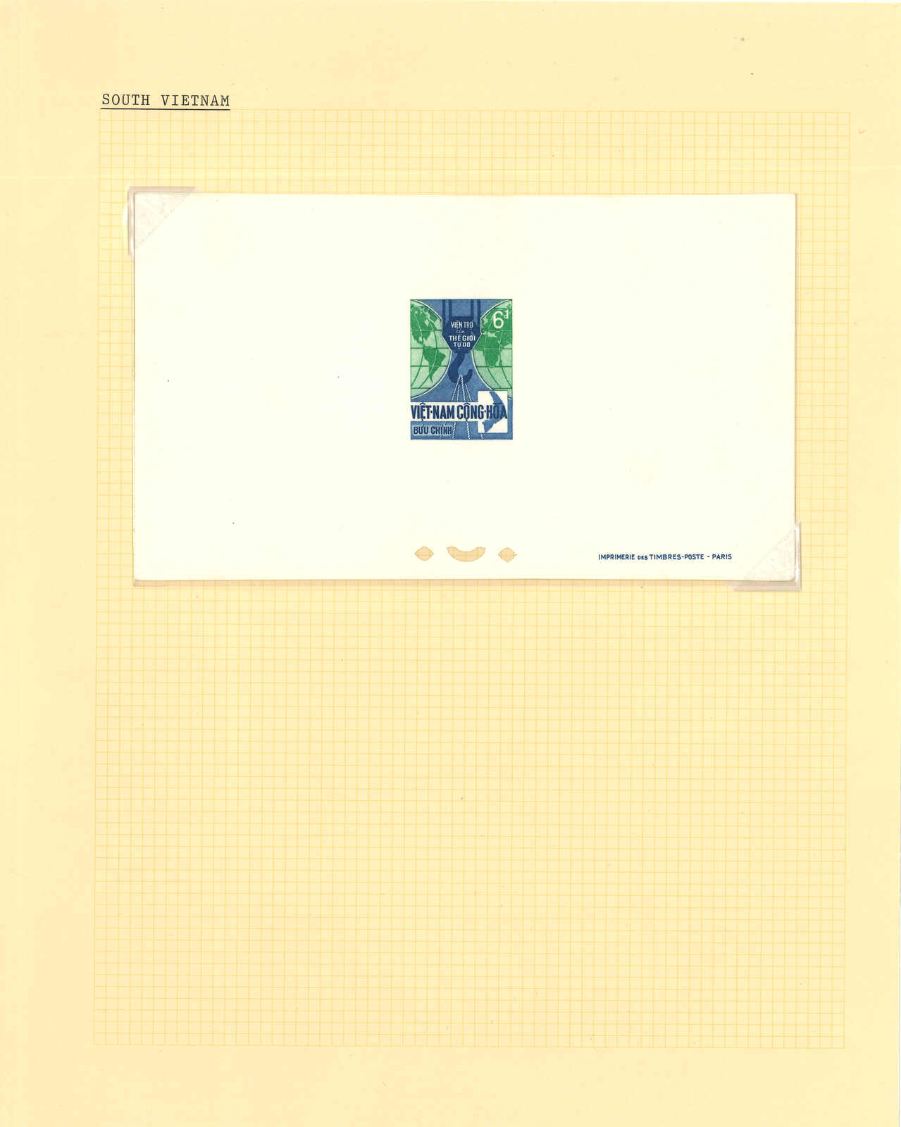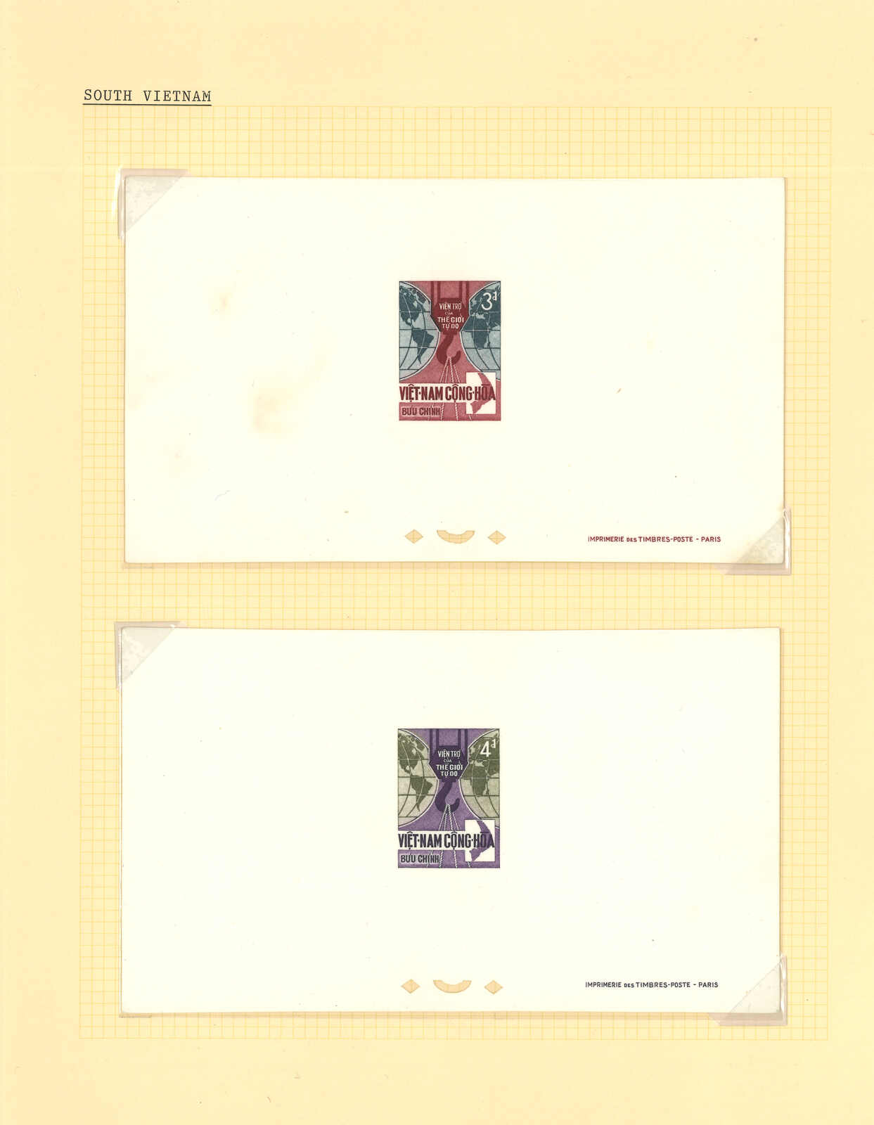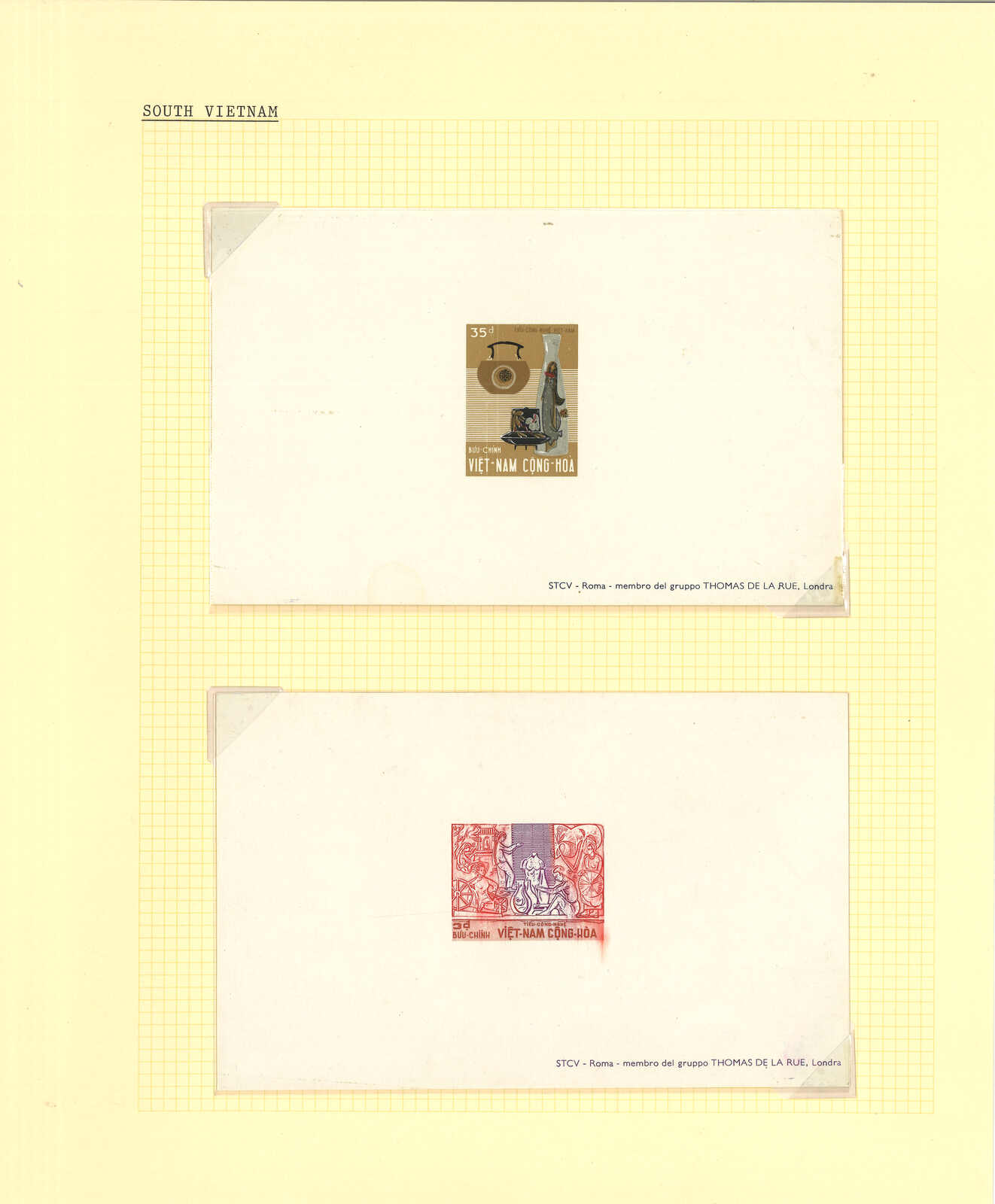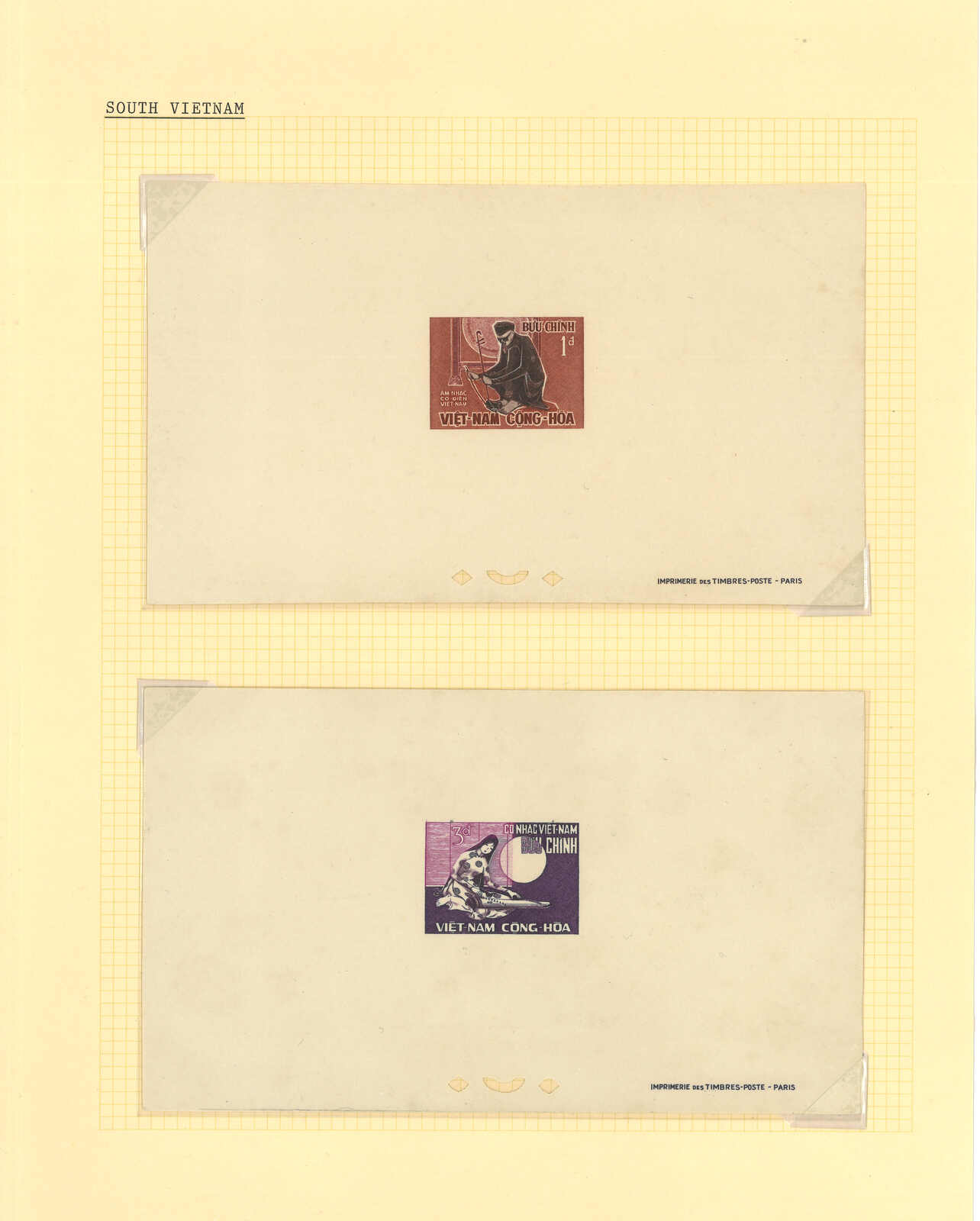 1966至1967年一組十套南越郵票之豪華試印張或無齒票,包括古代樂器、日內瓦世衛大樓、未發行之士兵票等。均無貼上品。(Image 1) (Image 2) (Image 3) (Image 4) (Image 5) (Image 6) (Image 7) (Image 8) (Image 9) (Image 10) (Image 11) (Image 12) (Image 13) (Image 14) (Image 15) (Image 16) (Image 17) (Image 18) (Image 19) (Image 20) (Image 21)