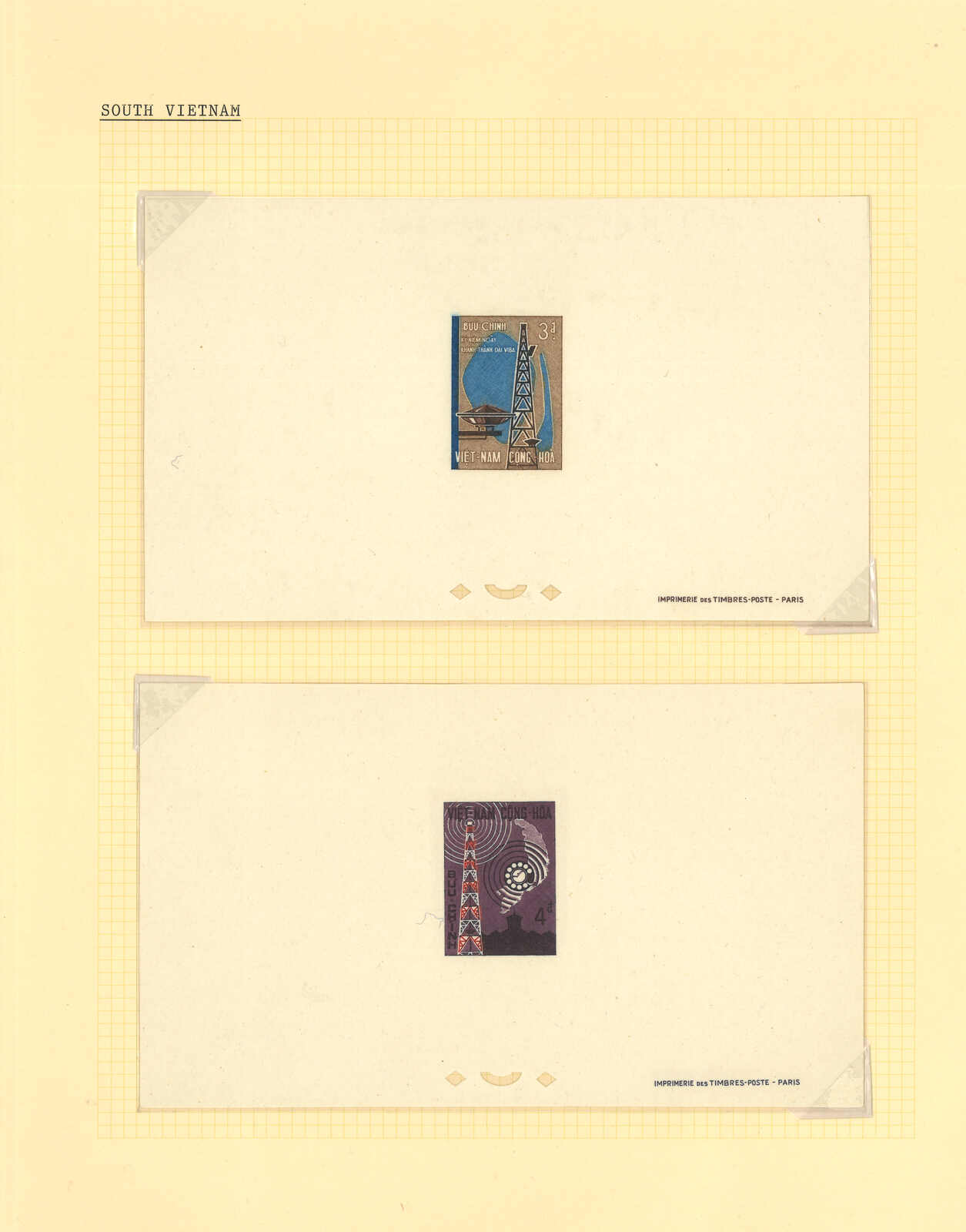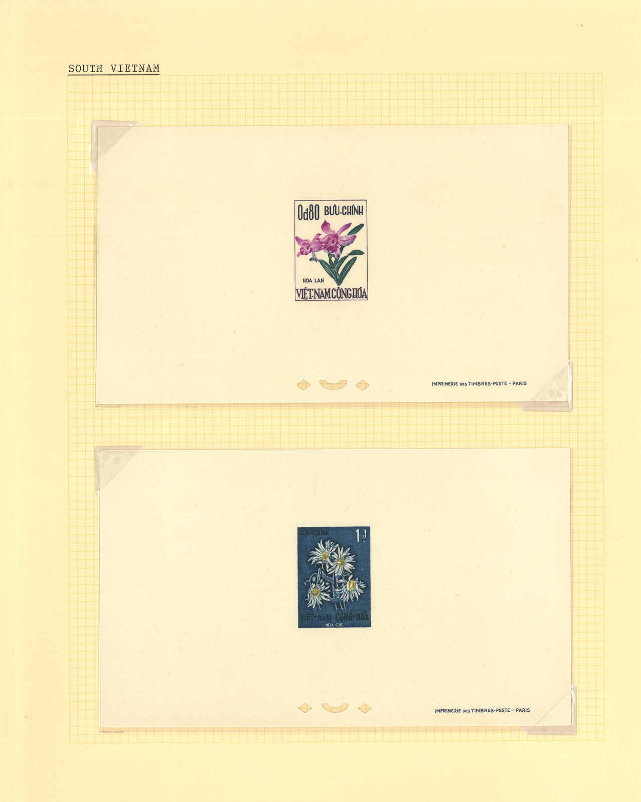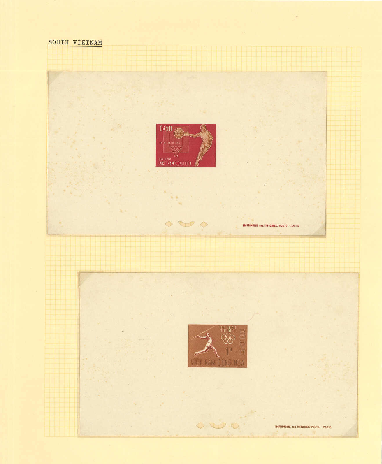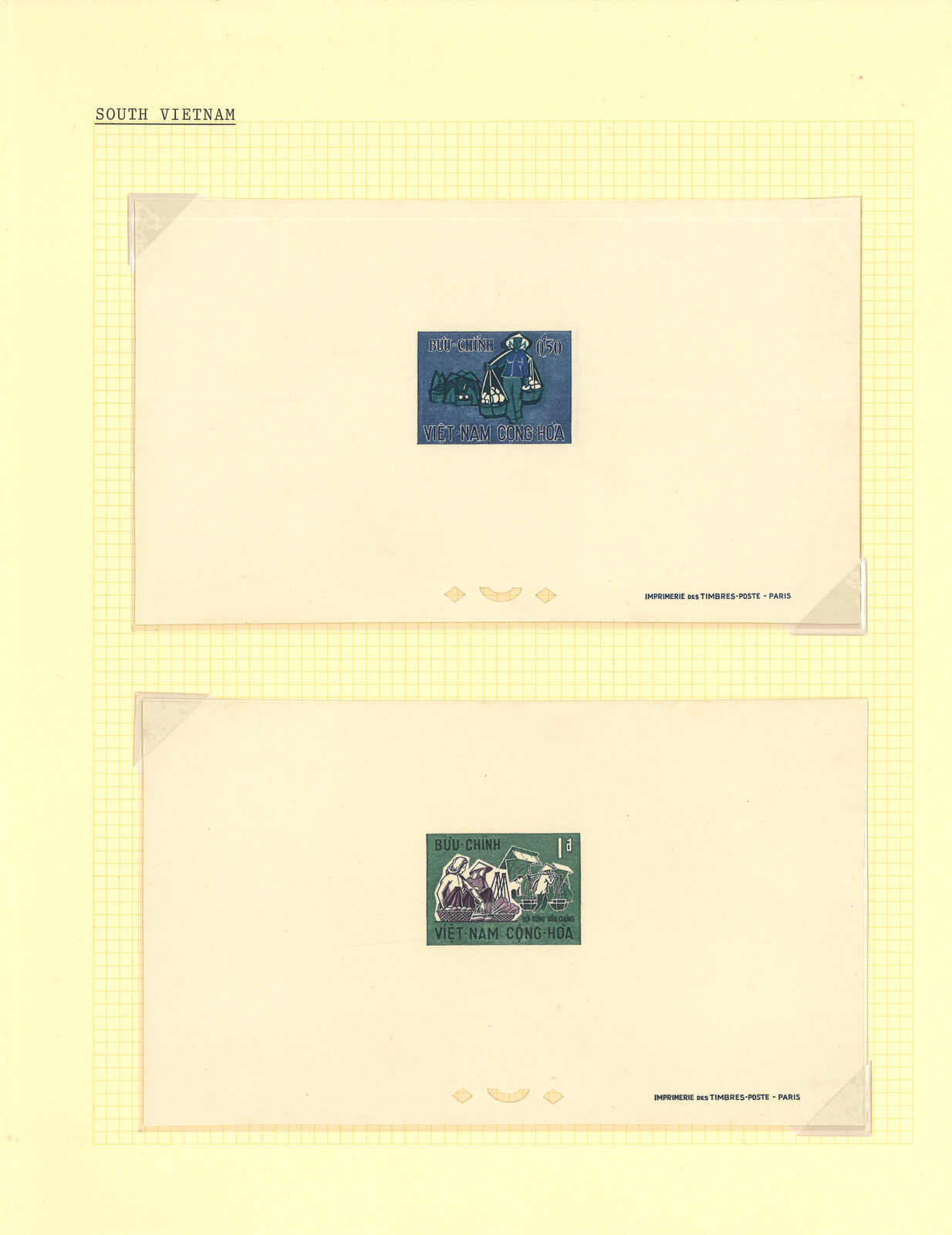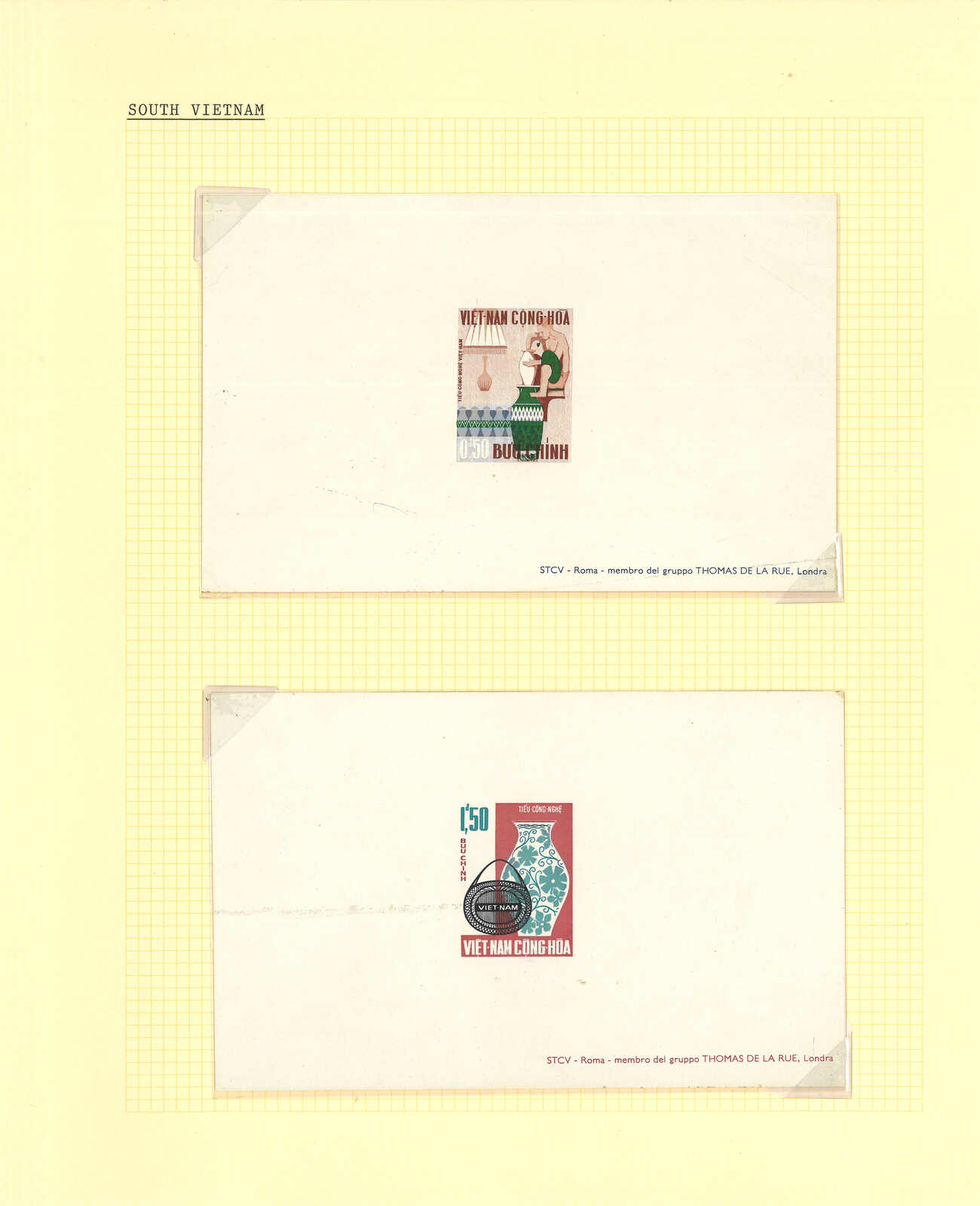 1966至1967年一組十套南越郵票之豪華試印張或無齒票,包括古代樂器、日內瓦世衛大樓、未發行之士兵票等。均無貼上品。(Image 1) (Image 2) (Image 3) (Image 4) (Image 5) (Image 6) (Image 7) (Image 8) (Image 9) (Image 10) (Image 11) (Image 12) (Image 13) (Image 14) (Image 15) (Image 16) (Image 17) (Image 18) (Image 19) (Image 20) (Image 21)