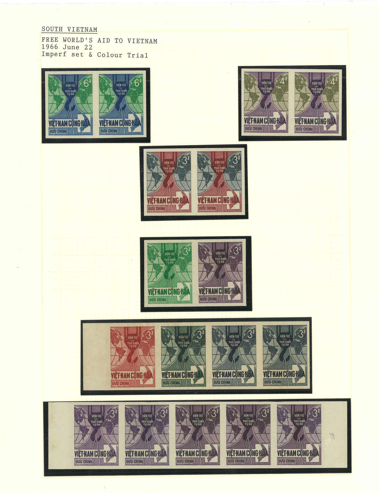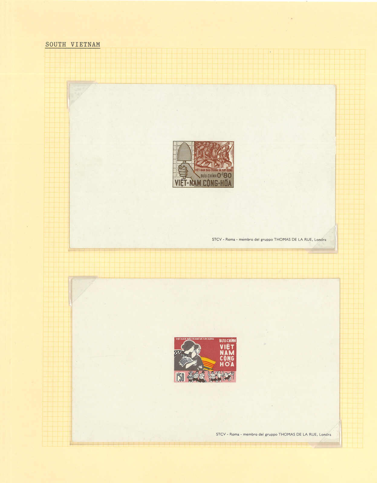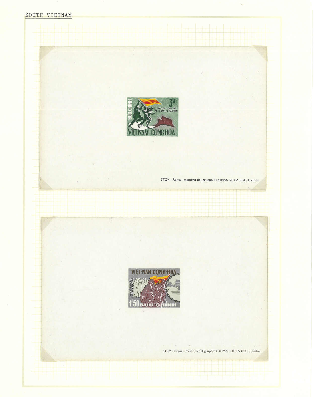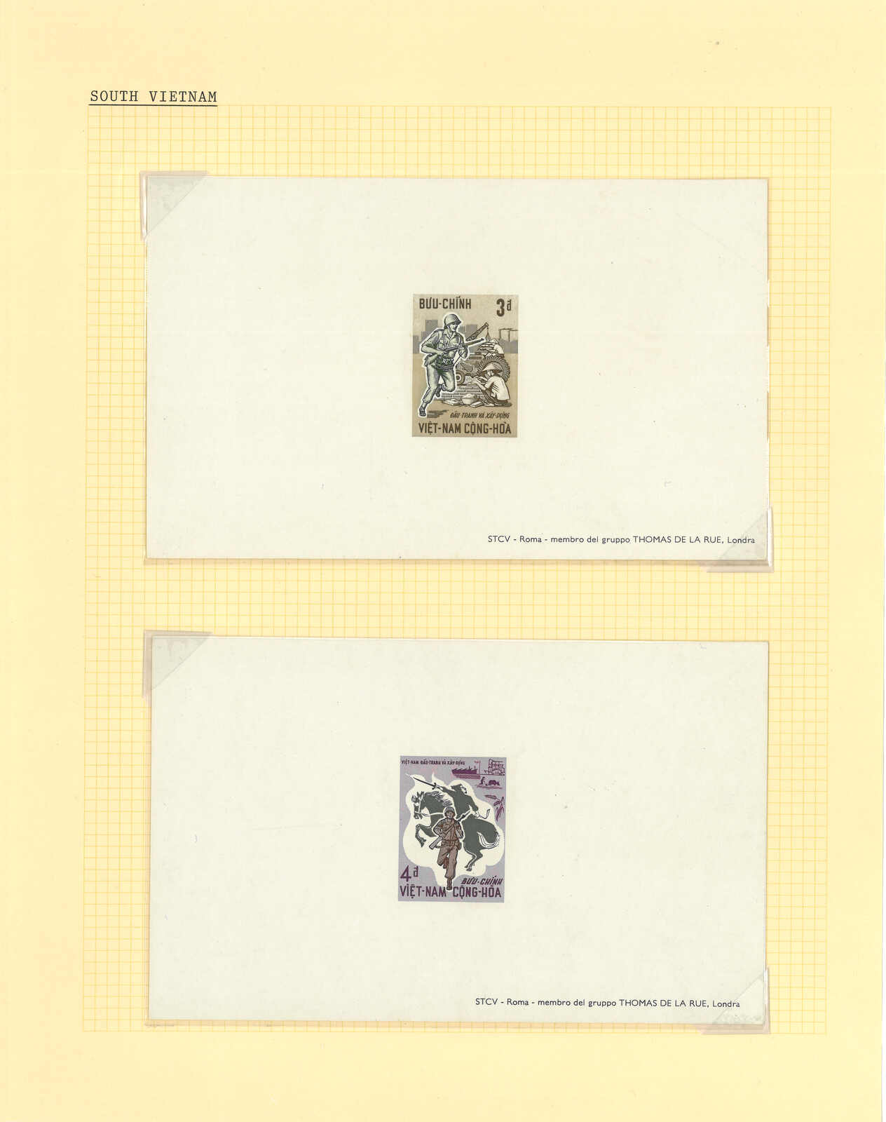 1966至1967年一組十套南越郵票之豪華試印張或無齒票,包括古代樂器、日內瓦世衛大樓、未發行之士兵票等。均無貼上品。(Image 1) (Image 2) (Image 3) (Image 4) (Image 5) (Image 6) (Image 7) (Image 8) (Image 9) (Image 10) (Image 11) (Image 12) (Image 13) (Image 14) (Image 15) (Image 16) (Image 17) (Image 18) (Image 19) (Image 20) (Image 21)