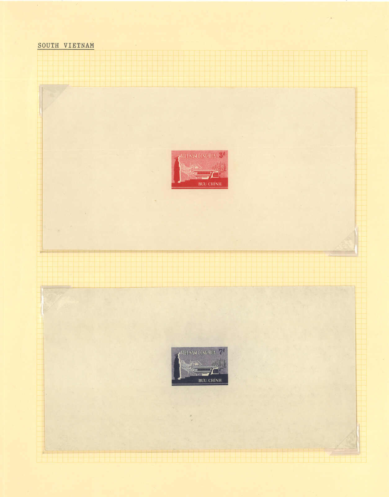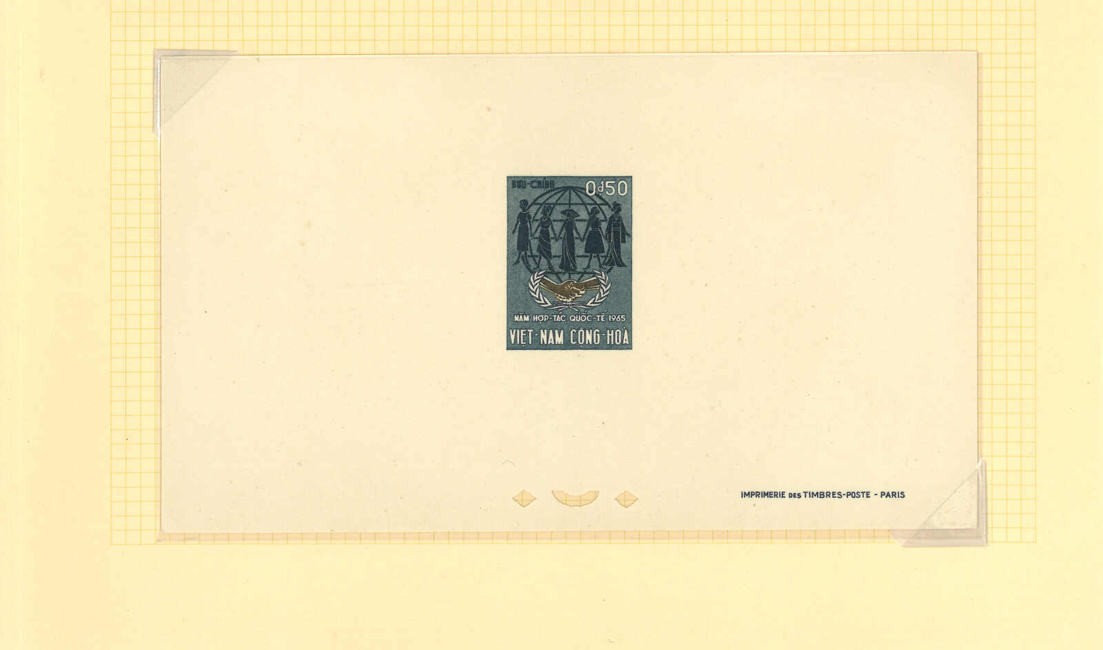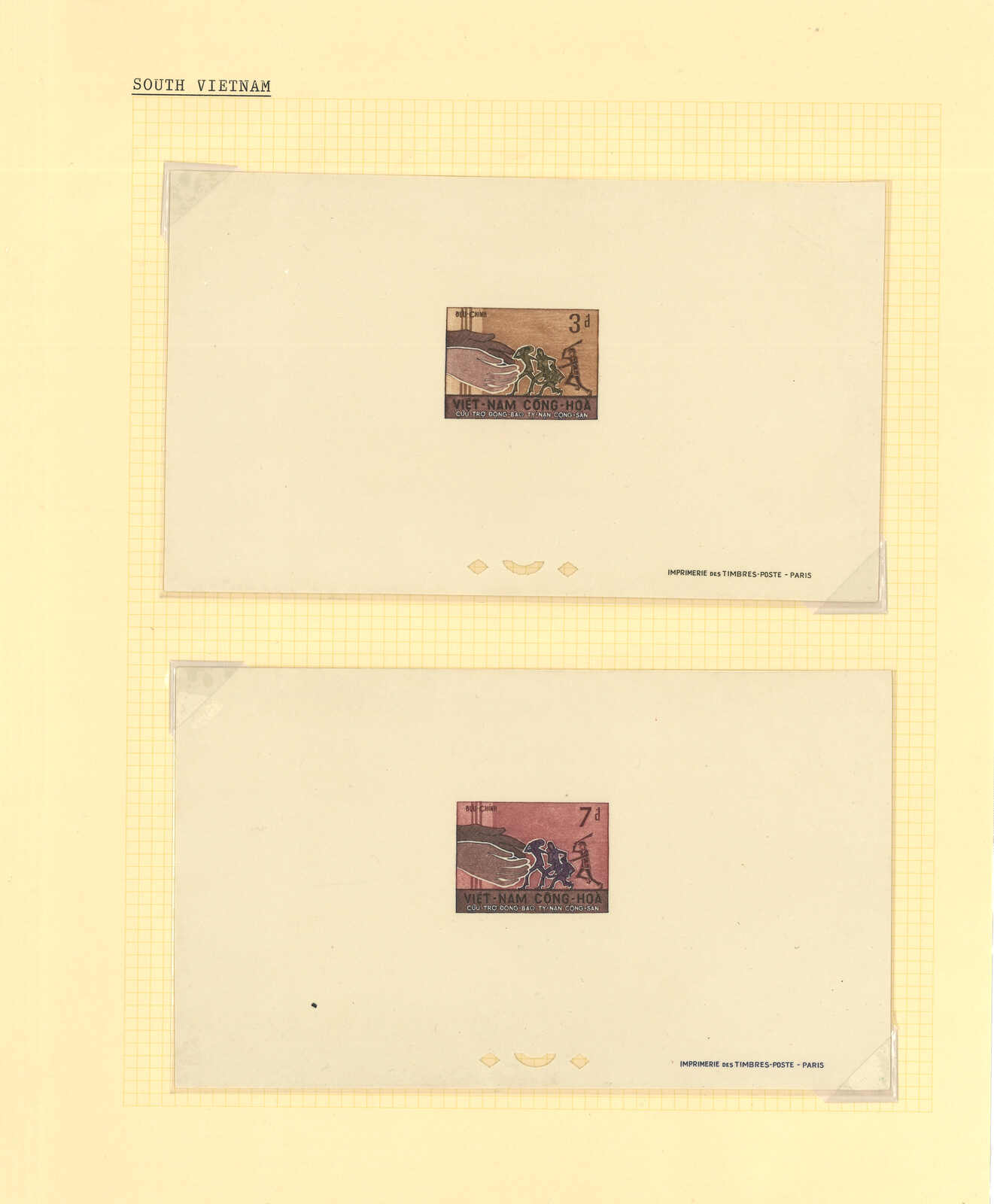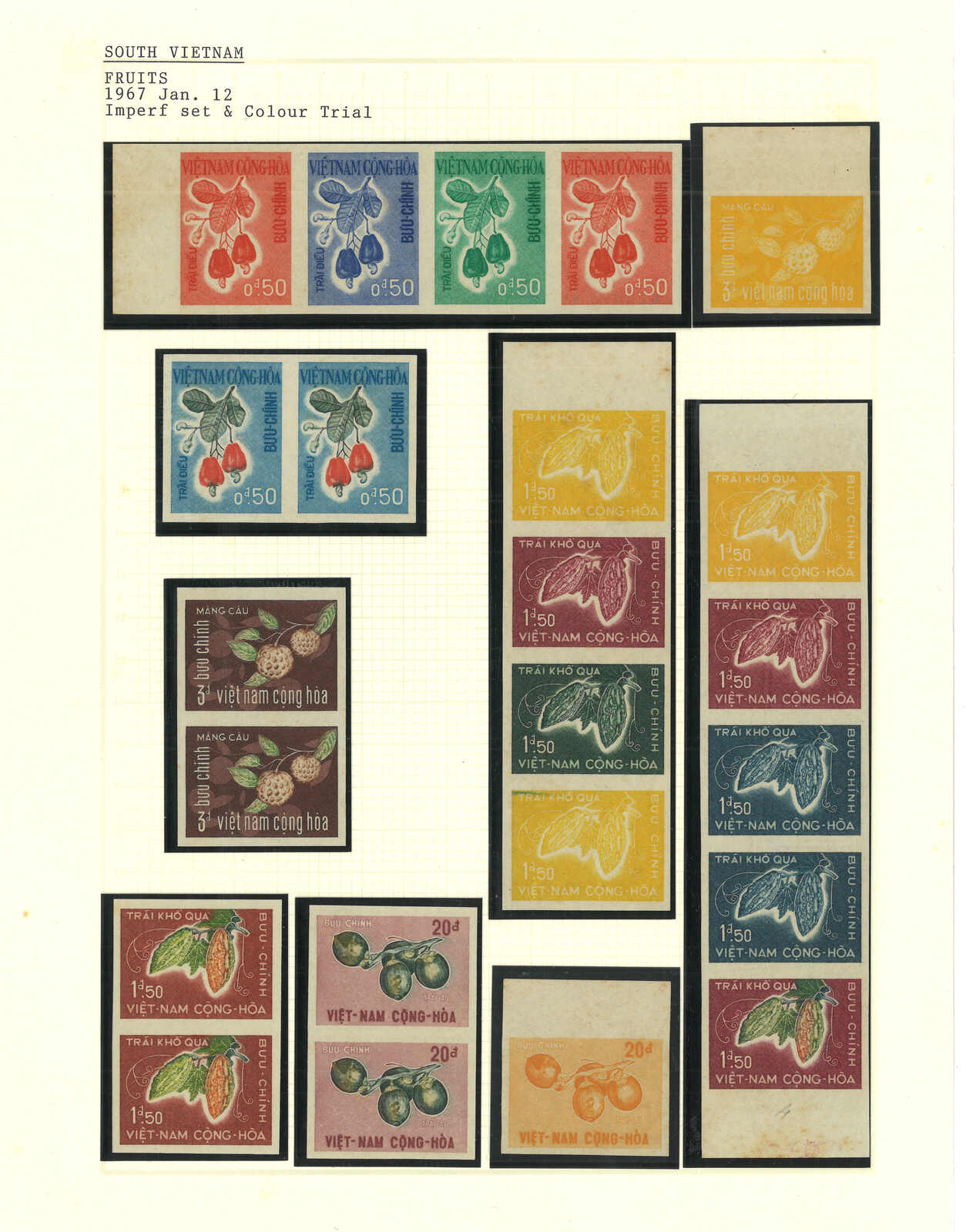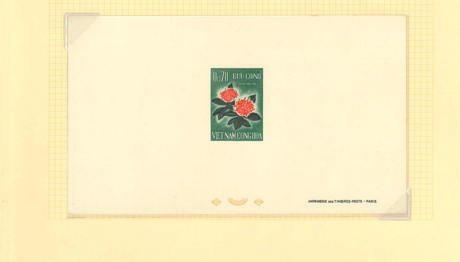 1966至1967年一組十套南越郵票之豪華試印張或無齒票,包括古代樂器、日內瓦世衛大樓、未發行之士兵票等。均無貼上品。(Image 1) (Image 2) (Image 3) (Image 4) (Image 5) (Image 6) (Image 7) (Image 8) (Image 9) (Image 10) (Image 11) (Image 12) (Image 13) (Image 14) (Image 15) (Image 16) (Image 17) (Image 18) (Image 19) (Image 20) (Image 21)