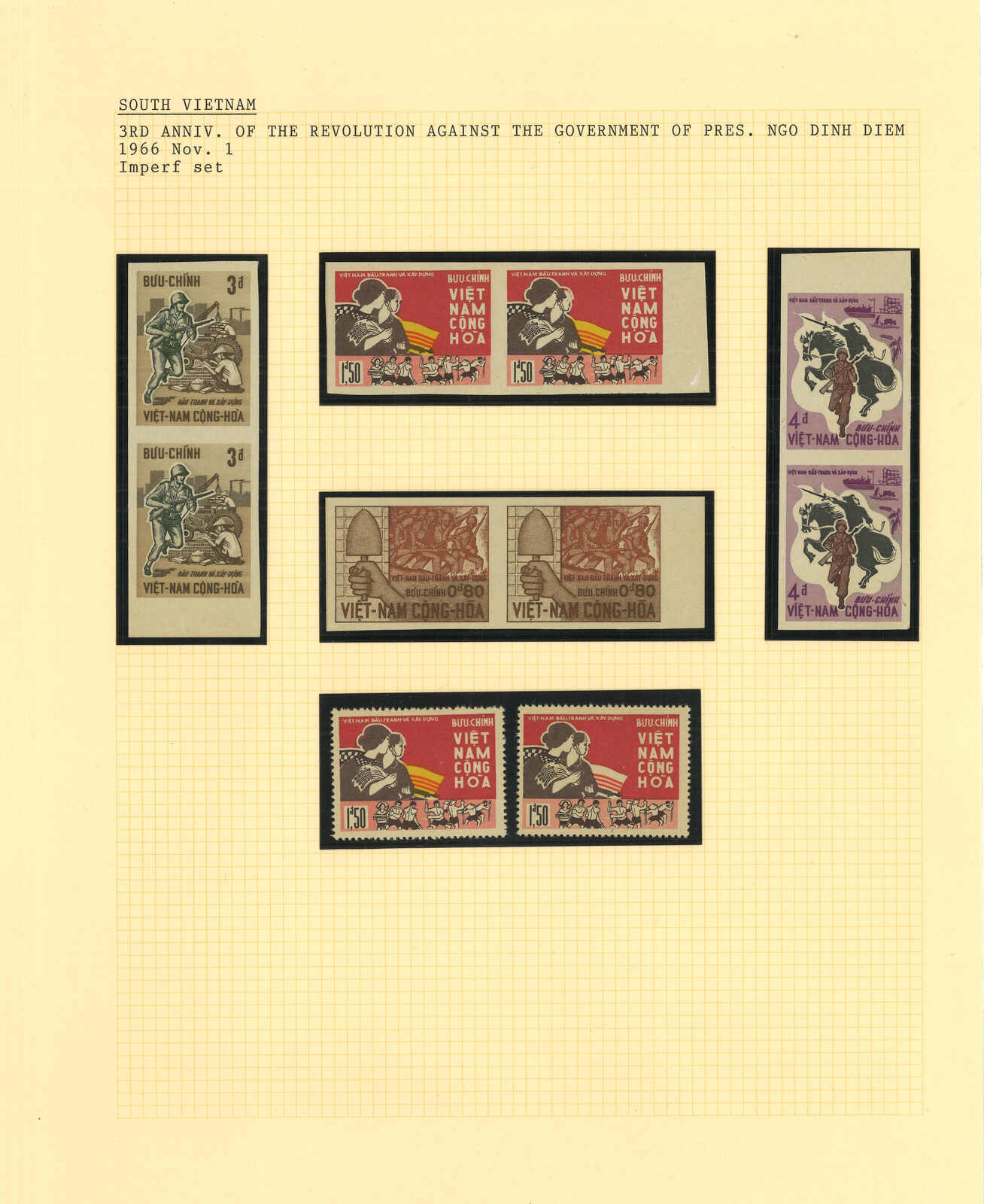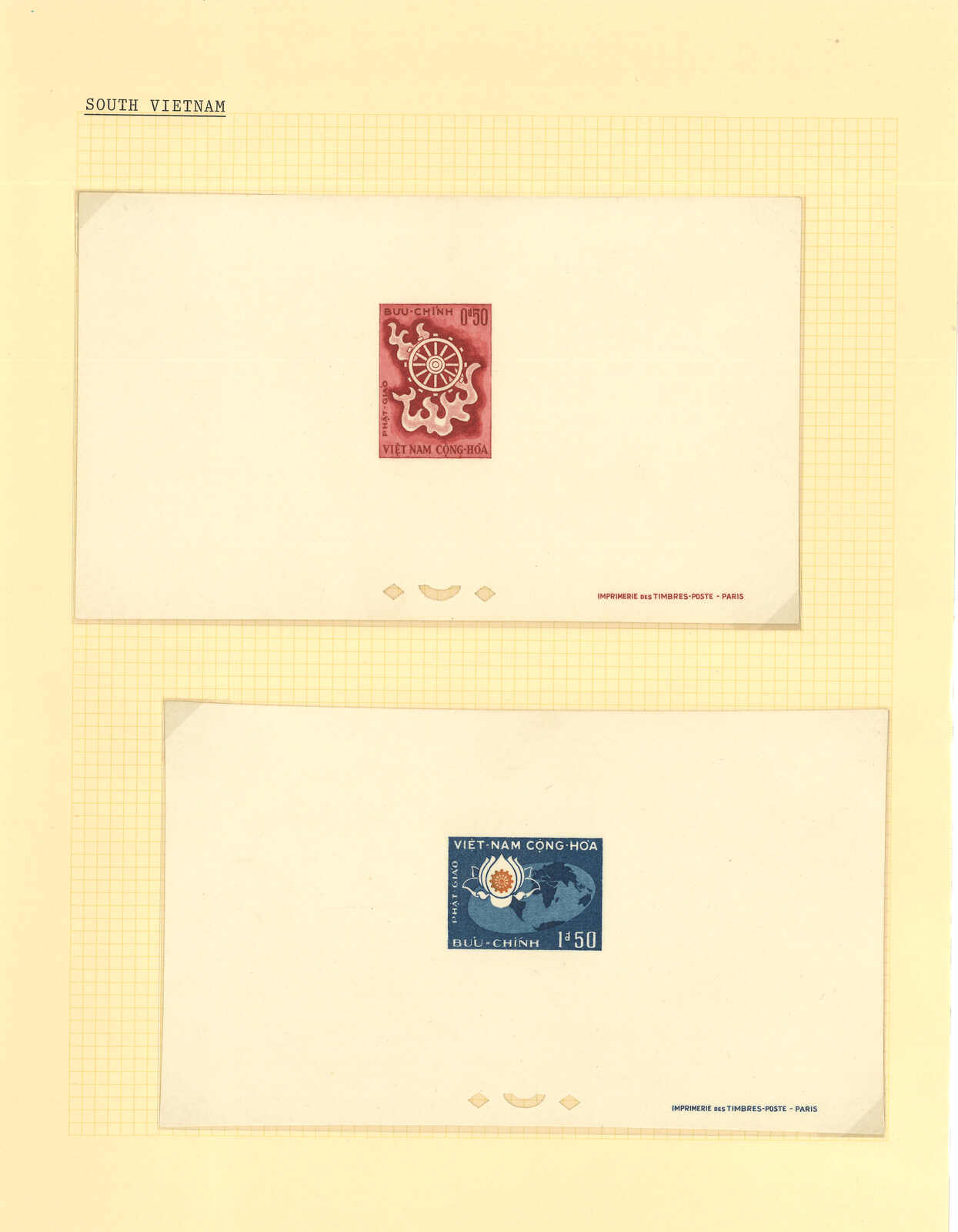 806 ** image1965- 1966 a collection of 10 sets of South Vietnam deluxe die proof or imperf issue, including Buddhism, International Corporation Year, Vietnam University etc. All MNH. Very Fine.
