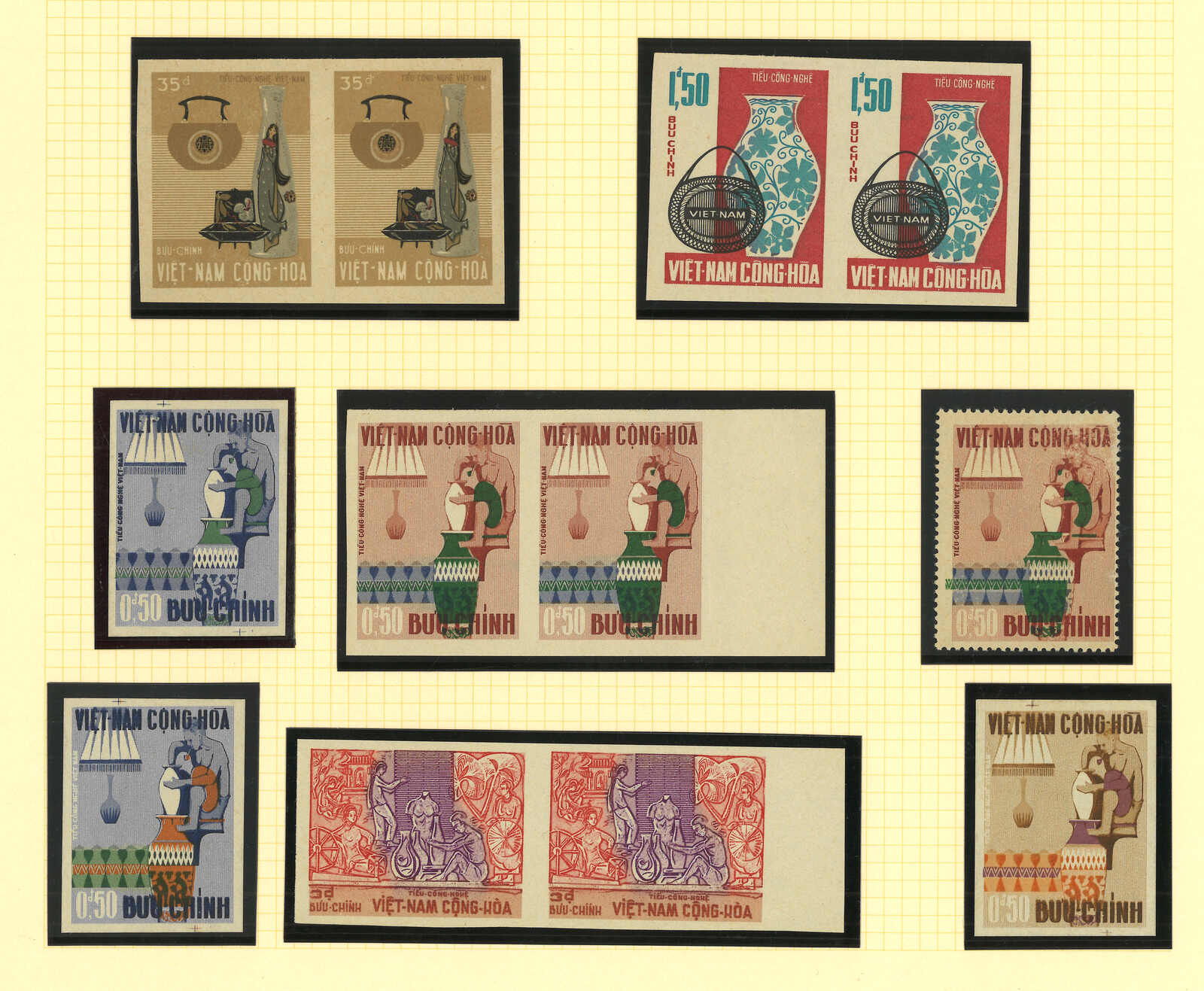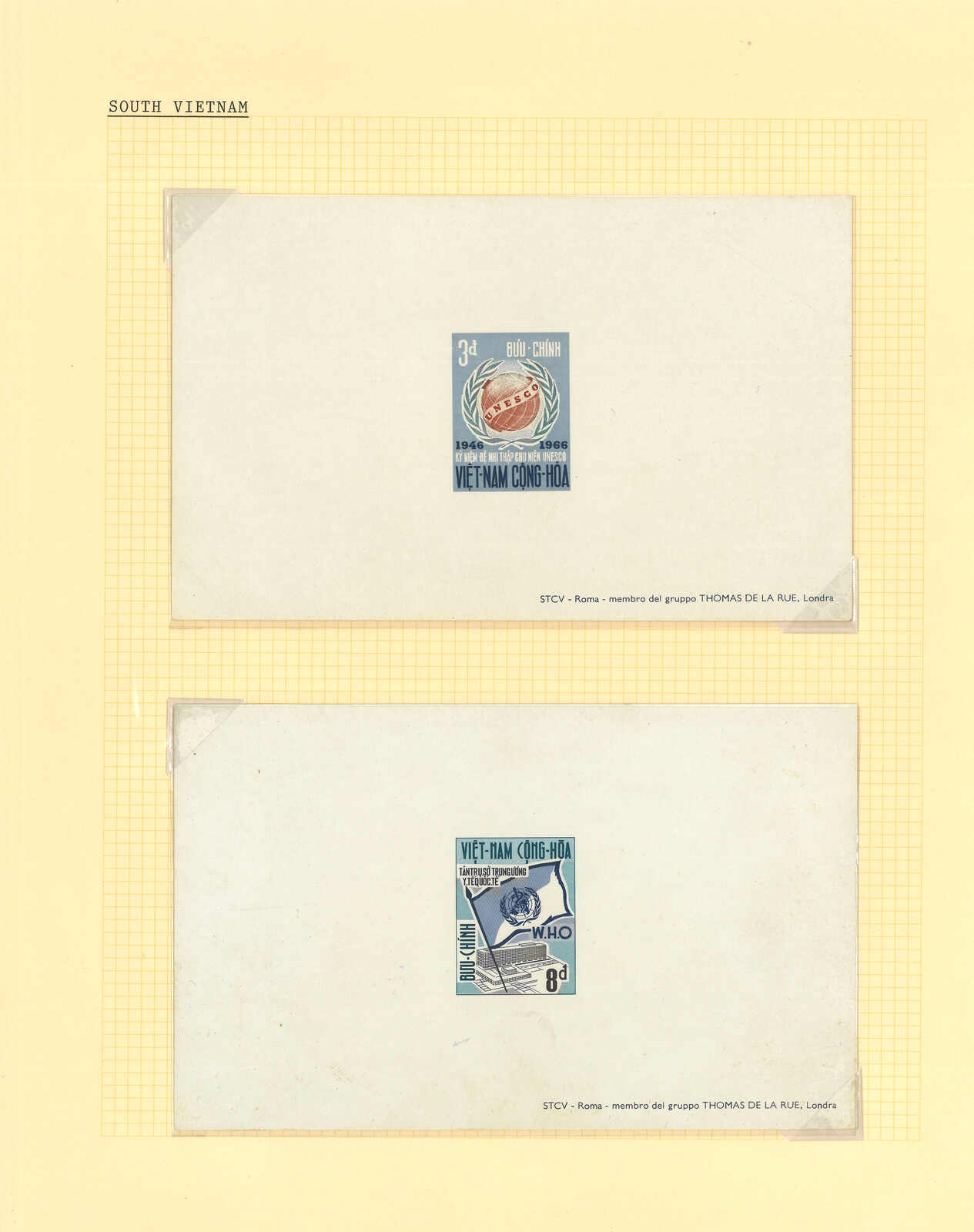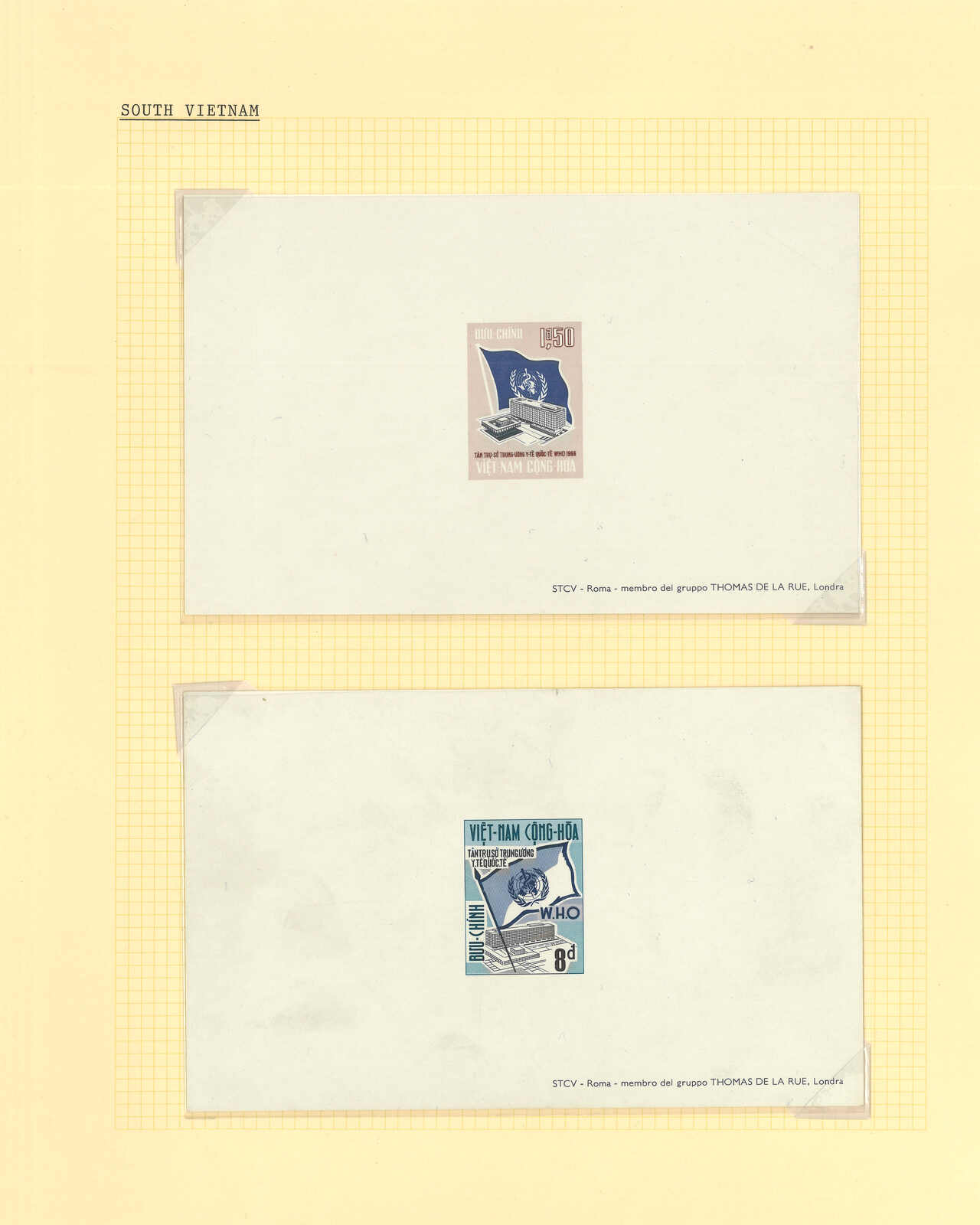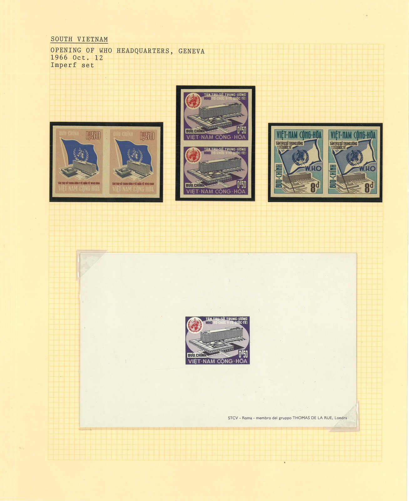 807 ** image1966-1967 a collection of 10 sets of South Vietnam deluxe die proof or imperf issue, including Ancient Musical Instrument, Inauguration of WHO Geneva, Unissued soldier stamps etc. All MNH. Very Fine.