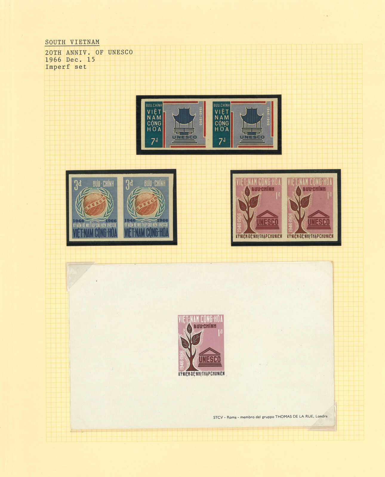 1965至1966年一組十套南越郵票之豪華試印張或無齒票,包括佛教、國際合作年、越南大學等。均無貼上品。(Image 1) (Image 2) (Image 3) (Image 4) (Image 5) (Image 6) (Image 7) (Image 8) (Image 9) (Image 10) (Image 11) (Image 12) (Image 13) (Image 14) (Image 15) (Image 16)