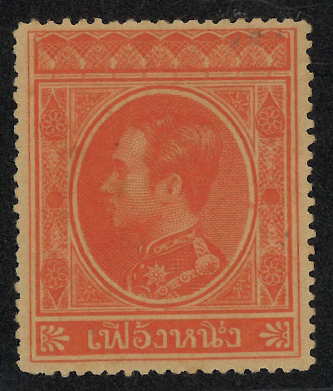 1883 unissued one Fuang (Somchai 6). MH with original gum. The 1 Fuang stamp was originally part of the 1st issue but finally not in use due to delay. In 1900, it was released for collection with other denominations. High