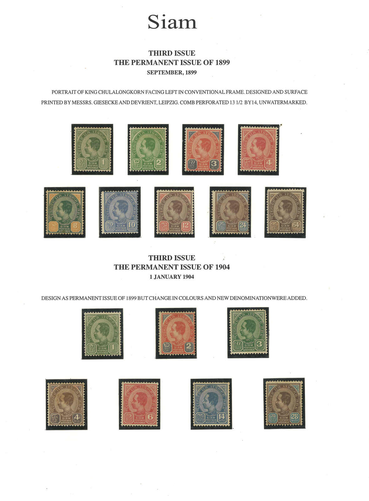 1899 and 1904 King Chulalongkorn 3rd issue complete set (Somchai 78-93), MH. F-VF. Shades were changed and new denominations were added in 1904.