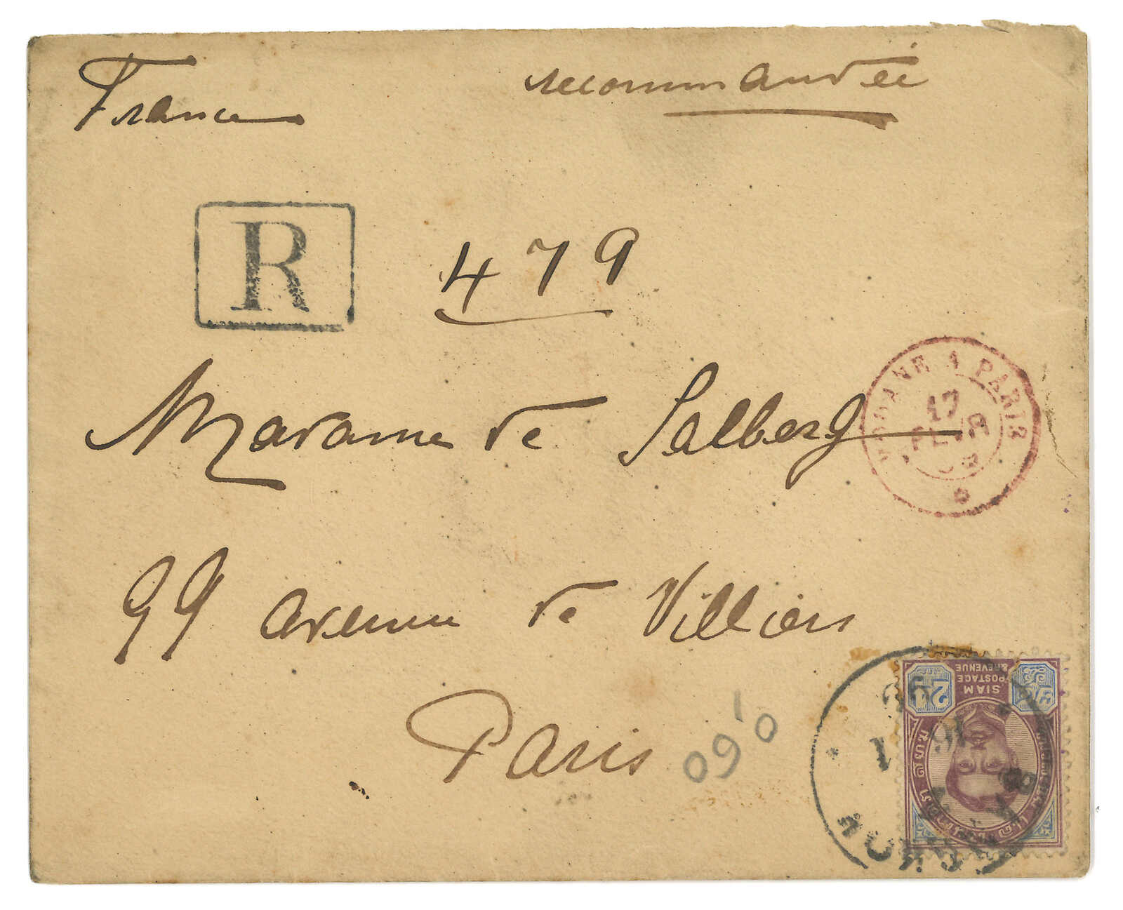1899.1.16 曼谷寄法國。掛號封,貼朱拉隆功像第二版24