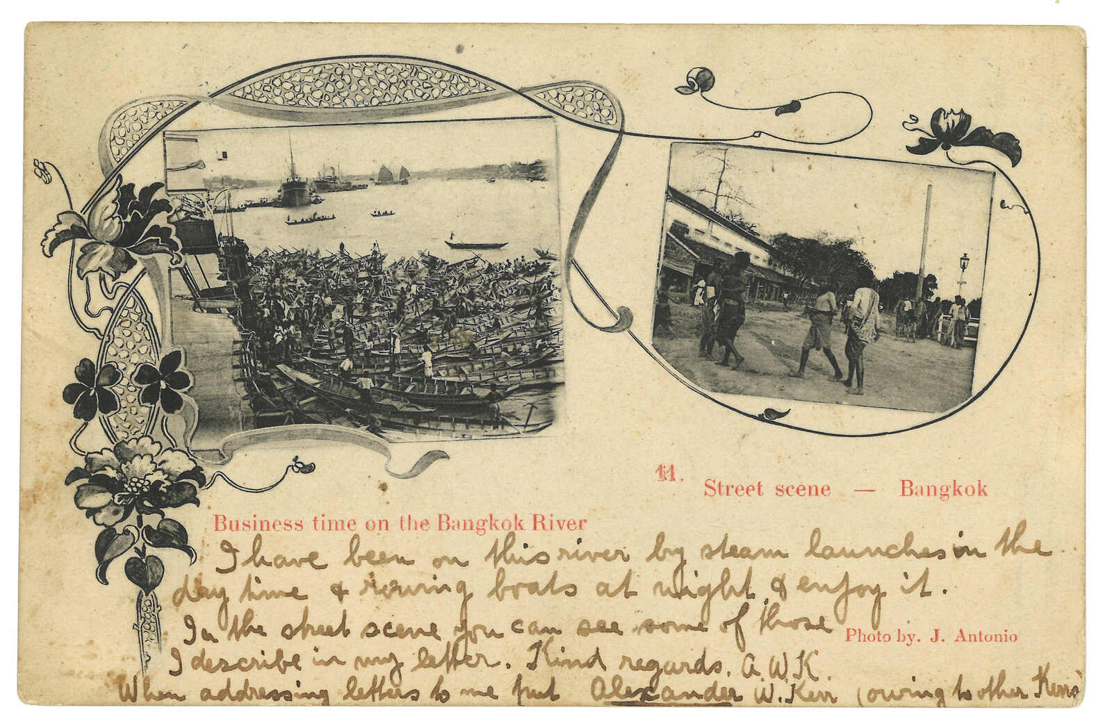 1909.2.24 曼谷寄蘇格蘭。圖片明信片,貼朱拉隆功像臨時改值2a/24a(Somchai 117),銷曼谷2局日戳。(Image 1)
