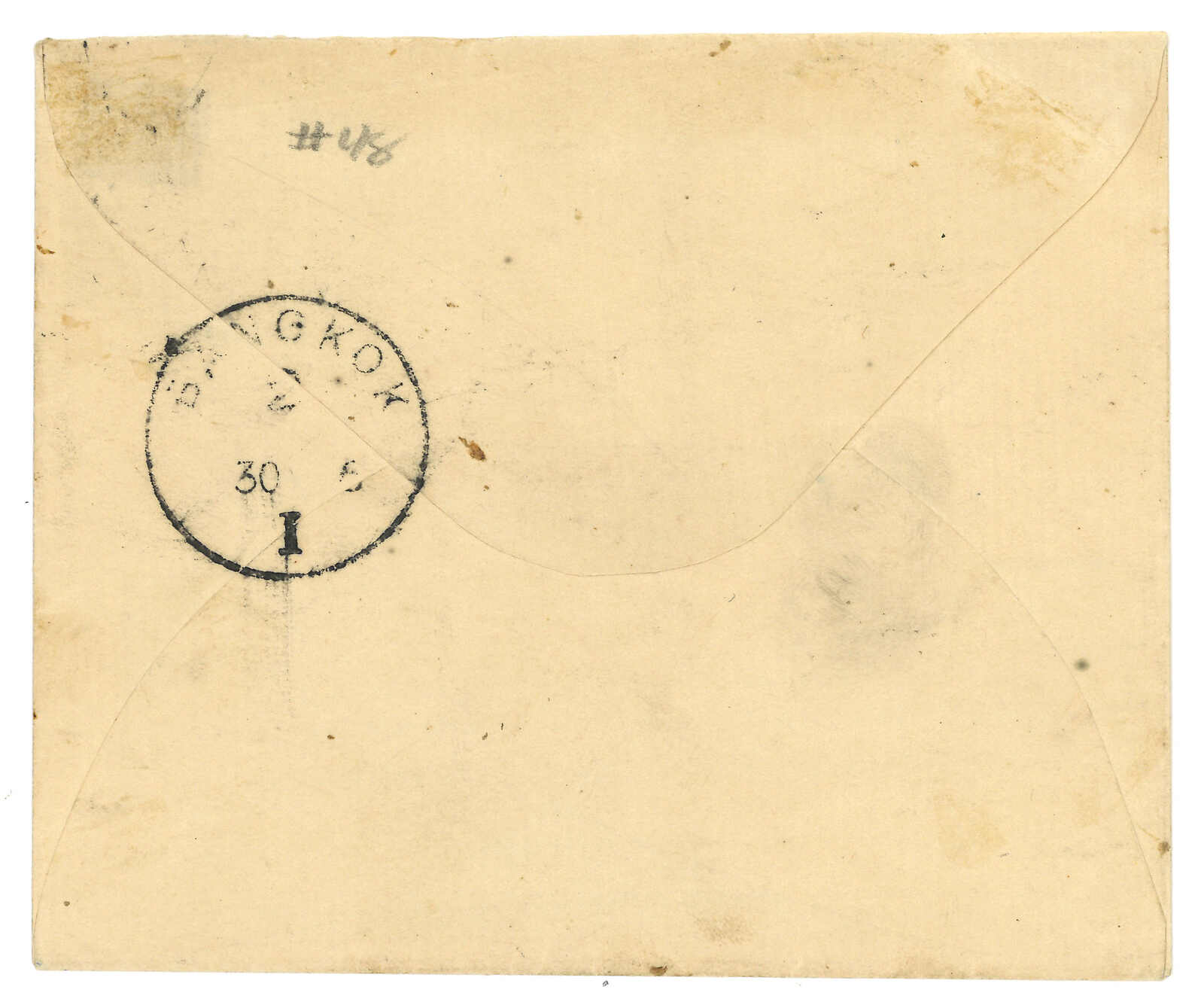 曼谷本埠,寄美國領事館,貼朱拉隆功像改值2a/64a(Somchai 69),銷曼谷2局日戳。背貼另見一處曼谷日戳。貼票稀罕難得。(Image 1)