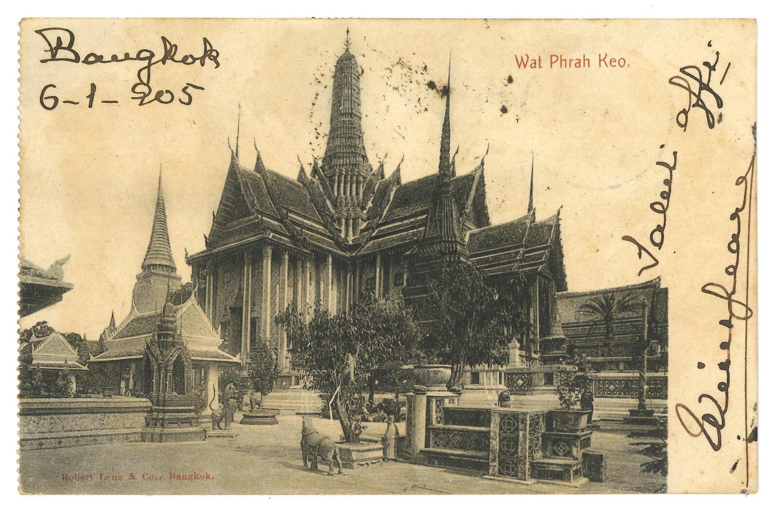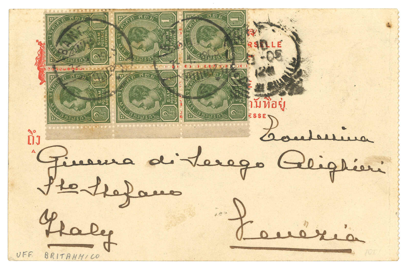 1905.1.7 曼谷寄意大利。圖片明信片,貼朱拉隆功像第三版1a六方連帶左邊紙,銷曼谷2局日戳。(Image 1)