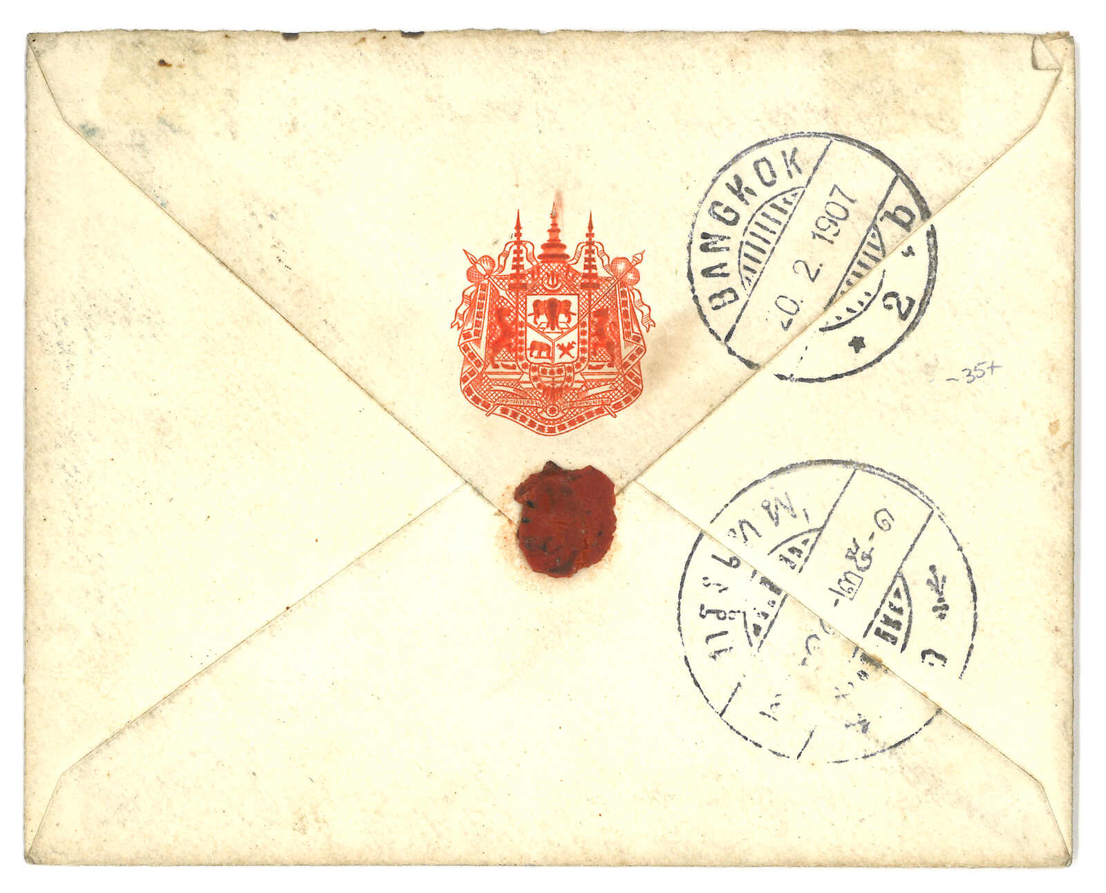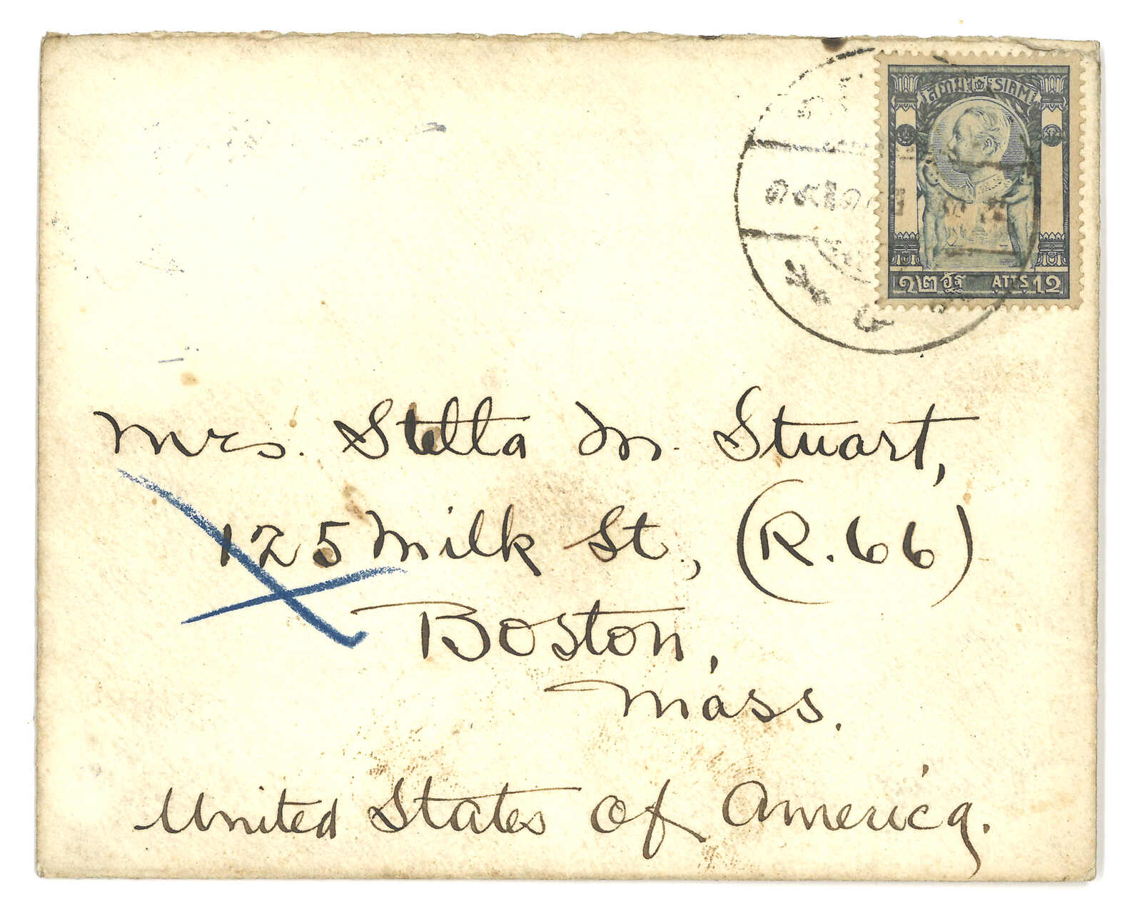 1907 Bangkok (20 Feb) to USA, f.w. Wat Jang 12a, tied by Bangkok 2 cds.