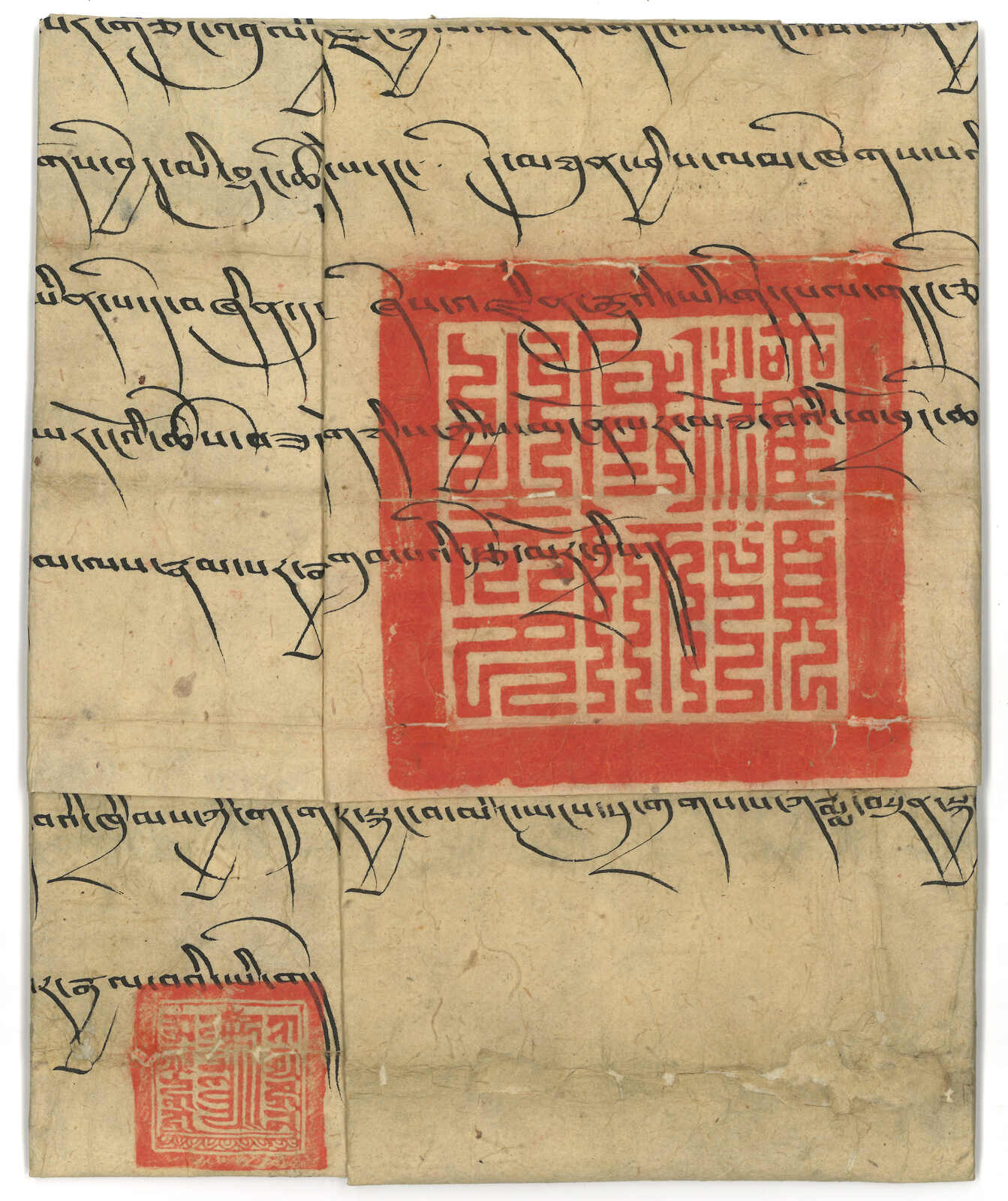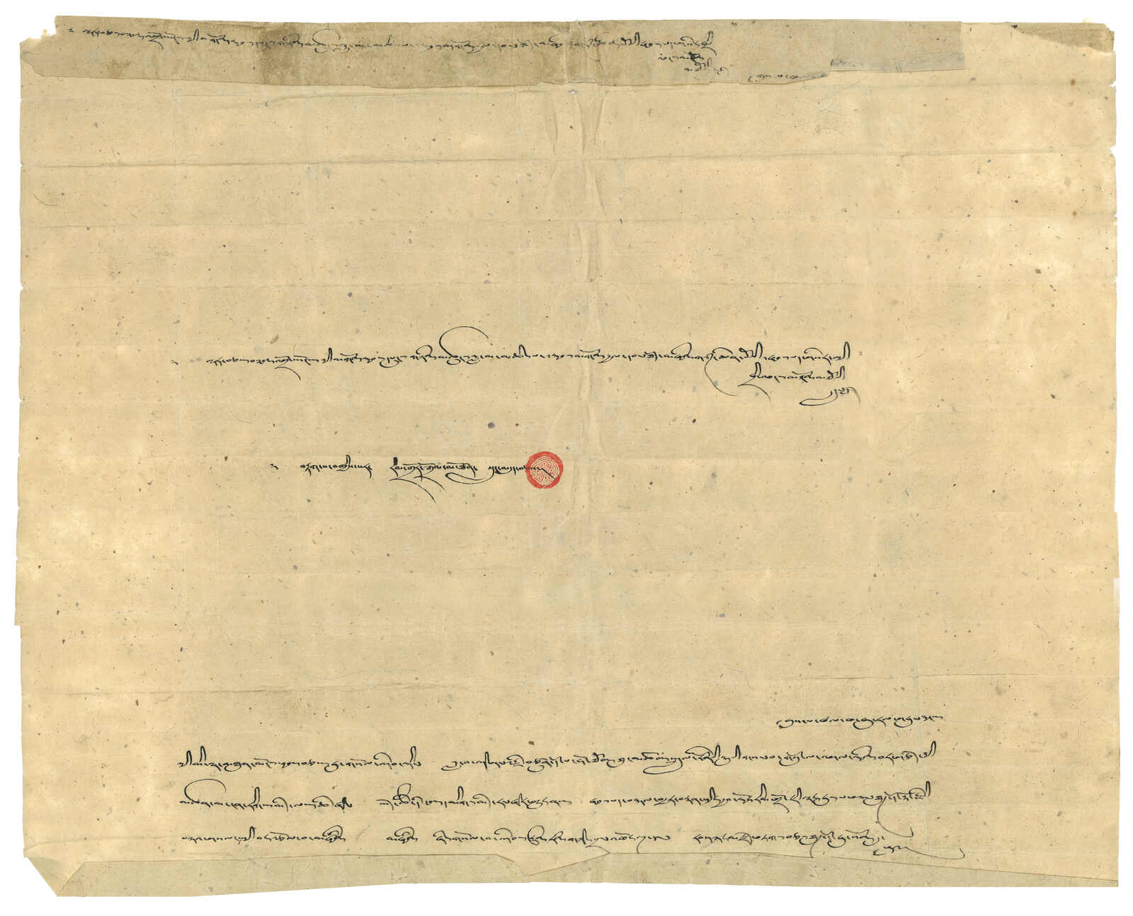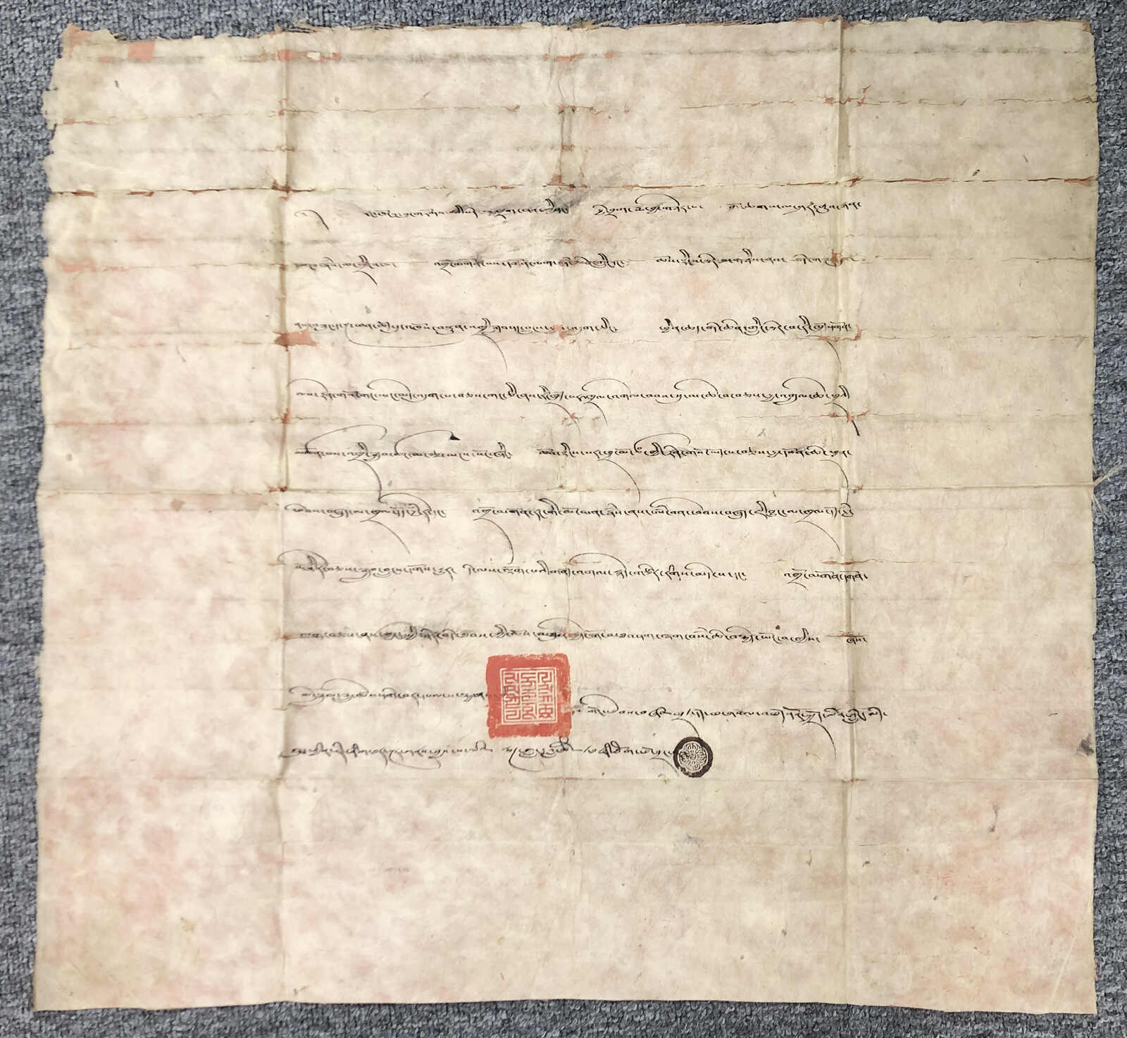 1633年蓋有灌頂國師之印信件一件,內容由丹迥旺波批核,有關救援窮困。(Image 1) (Image 2)