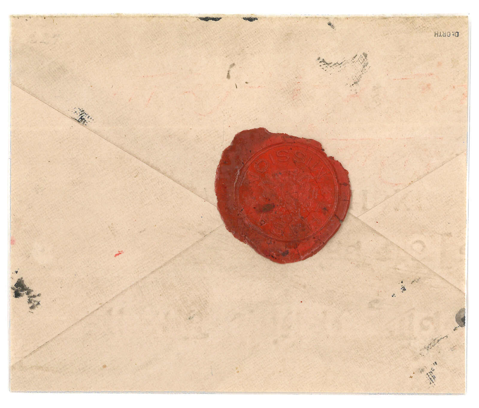 1904 Cover back applied with “LHASA MISSION” red wax seal. One of the two exising examples of this wax seal.