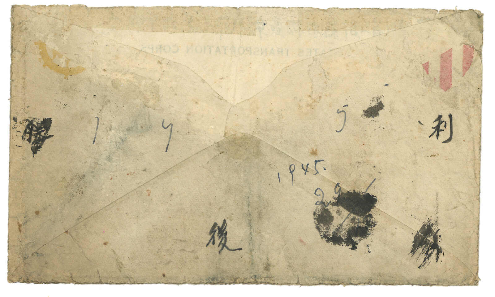 1958 image1946 (18 Jan) United States Transportation Corps cover from Kweichow to Canton, f.w. SYS $4 x5, tied by Military Post No. 52 cds. The US Army Transportation Corps played a vital role in supporting operations in China, included constructing and maintaining the Burma Road. Cover with creases and missing flap.