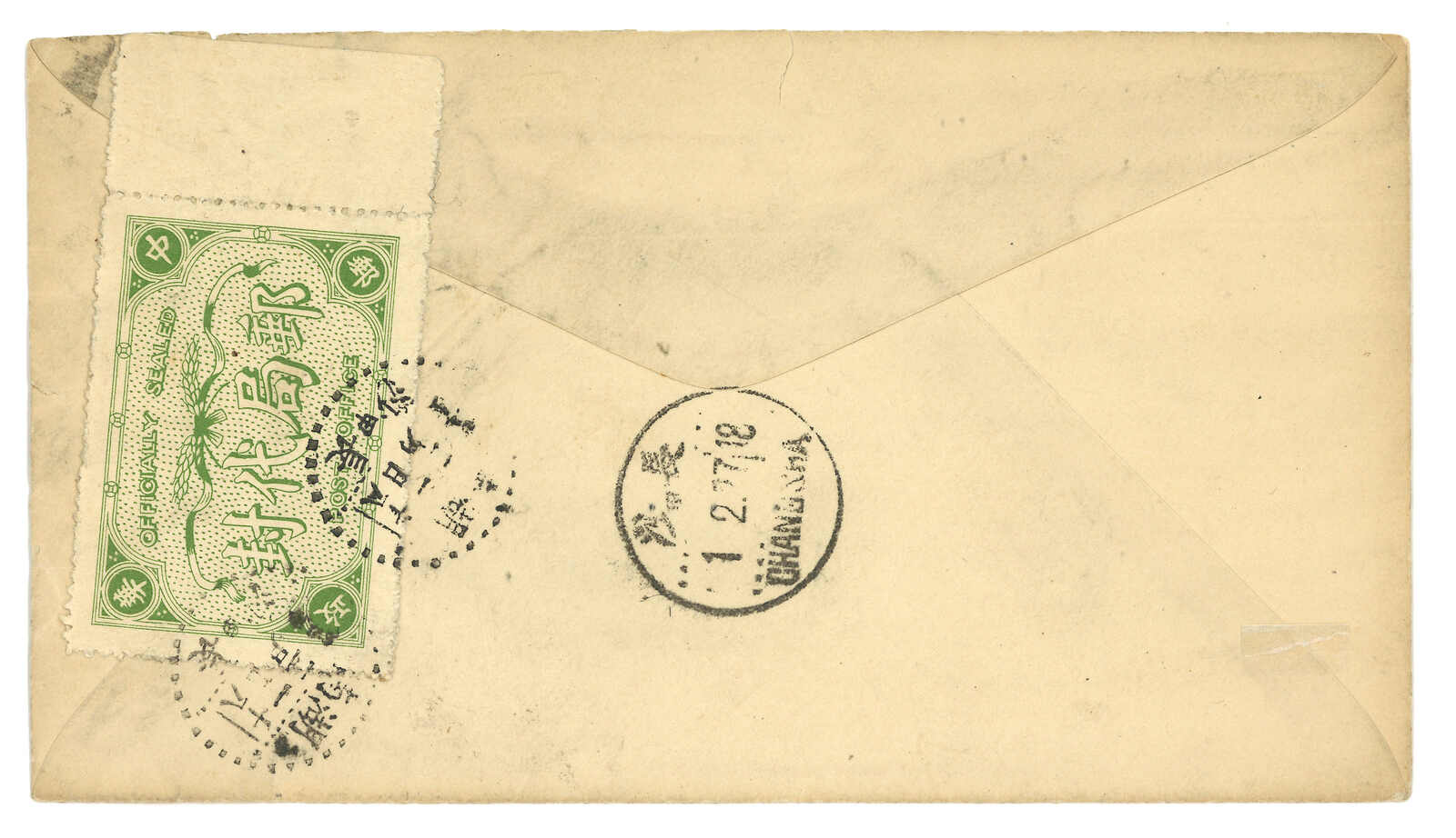 231 cover image1937 USA (16 Dec) to Changsha, f.w. US 1c + 2c, tied by duplex d.s. In combination with 6th print officially resealed label, applied with Hunan Changsha (1 Feb) arrival cds.