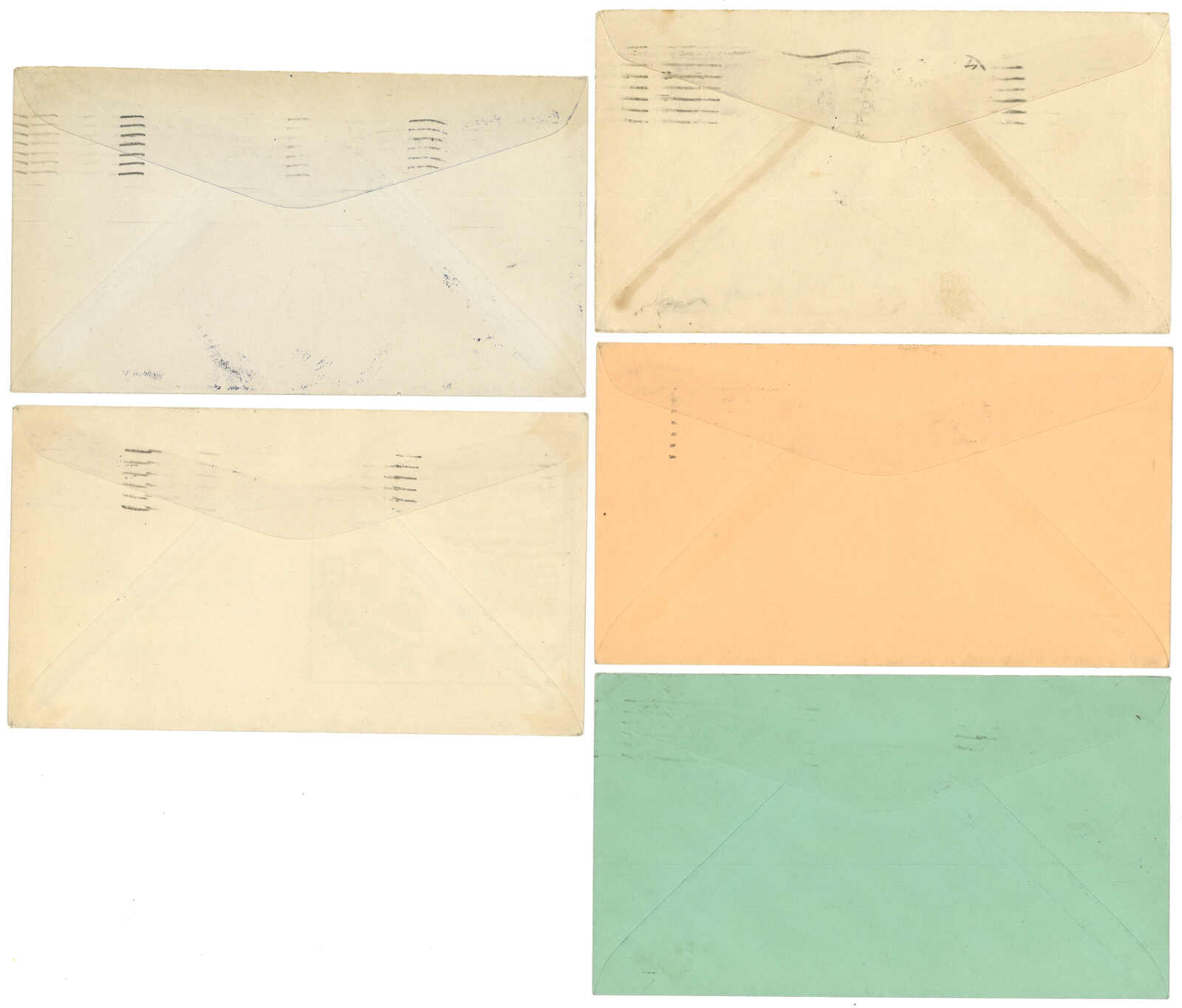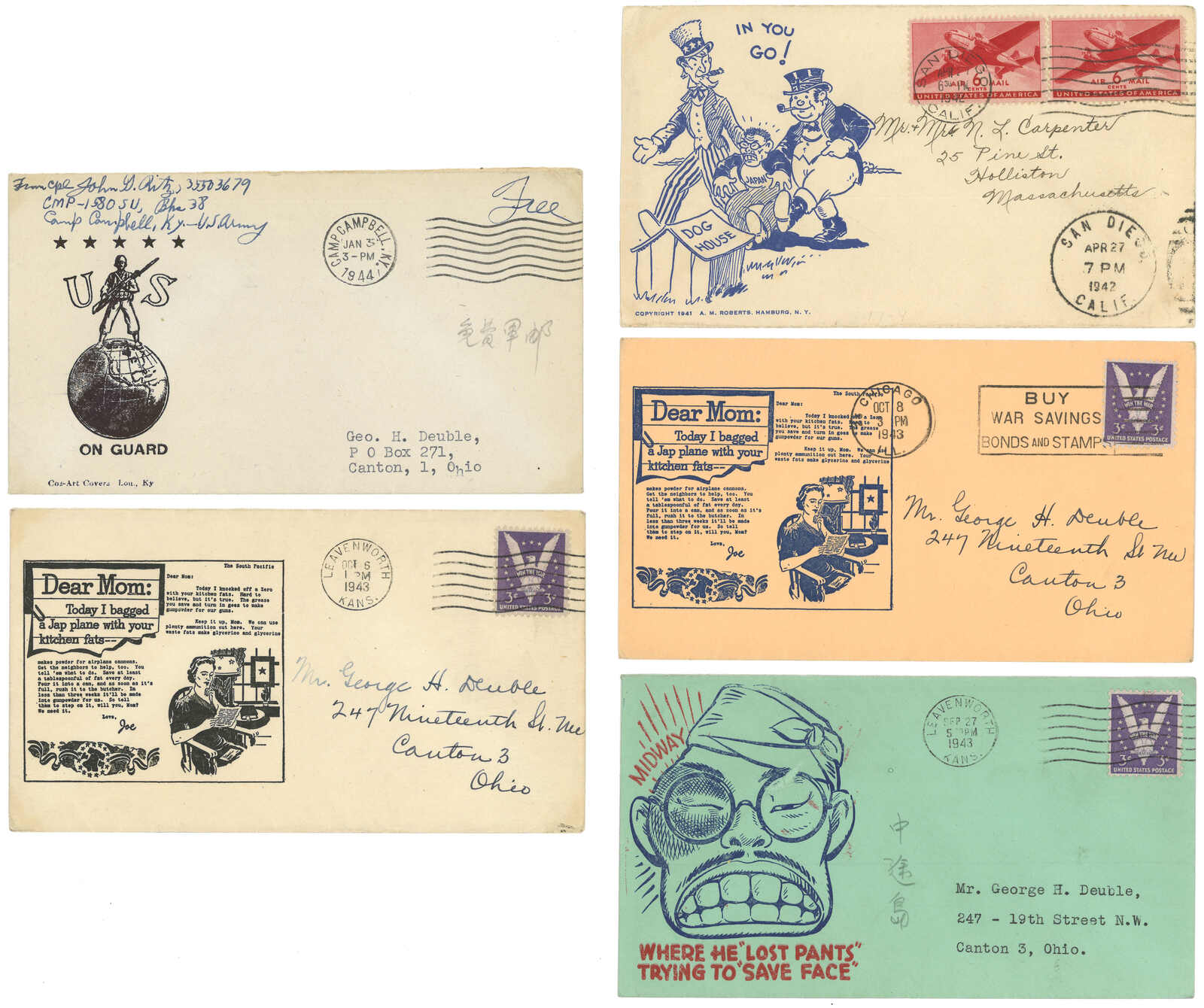 1943年一組五件印有愛國宣傳圖案之美國信封。(Image 1) (Image 2)
