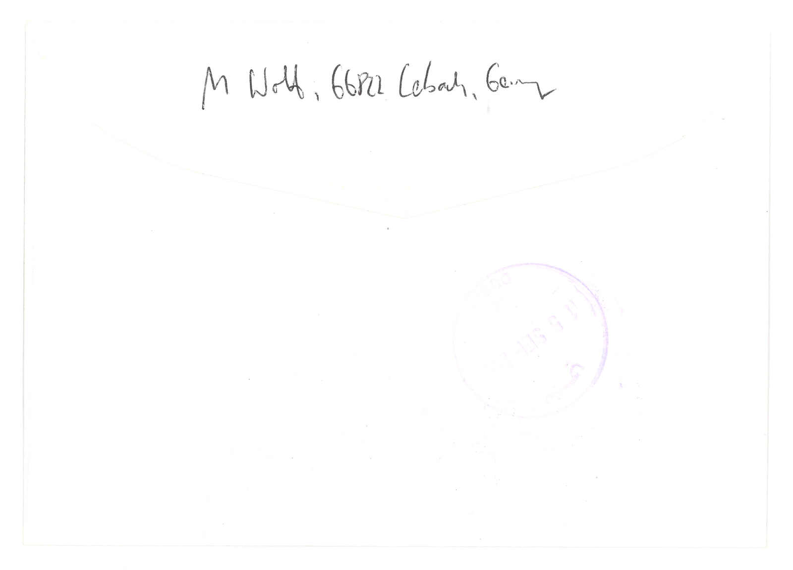 3408 image2001 (15 Sep) United Arab Emirates “Hunting Falcon” 5.00DH ATM stamp FDC, addressing to Germany, tied by Dubai cds. Due to the malfunction of the vending machine, only 143 stamps were issued for less than one month. A rarity in ATM philately.