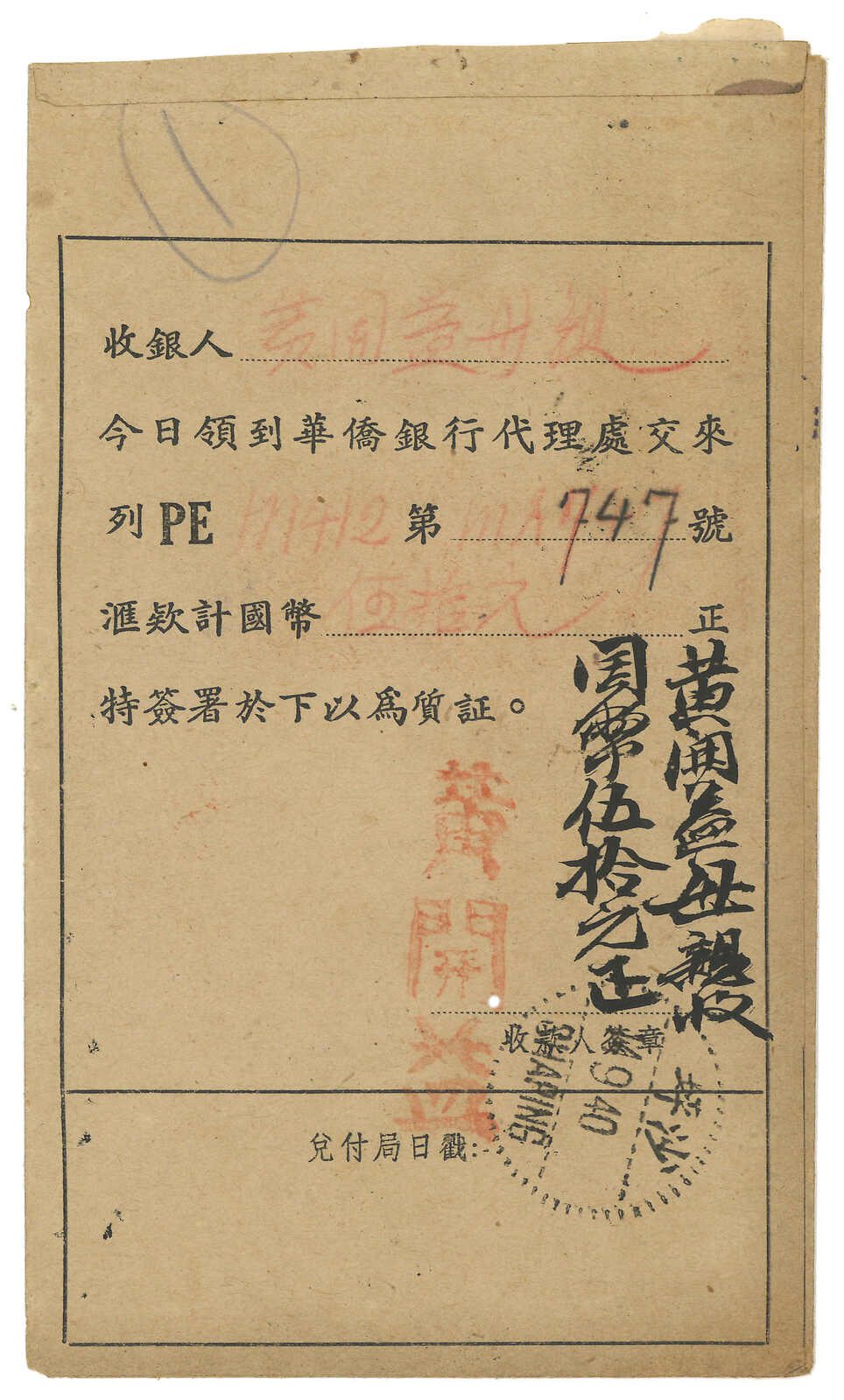 1930s a pair of OCBC Kuala Lumpur remittance red band cover and OCBC Amoy deposit receipt. Reflecting the role of OCBC in remittance industry.