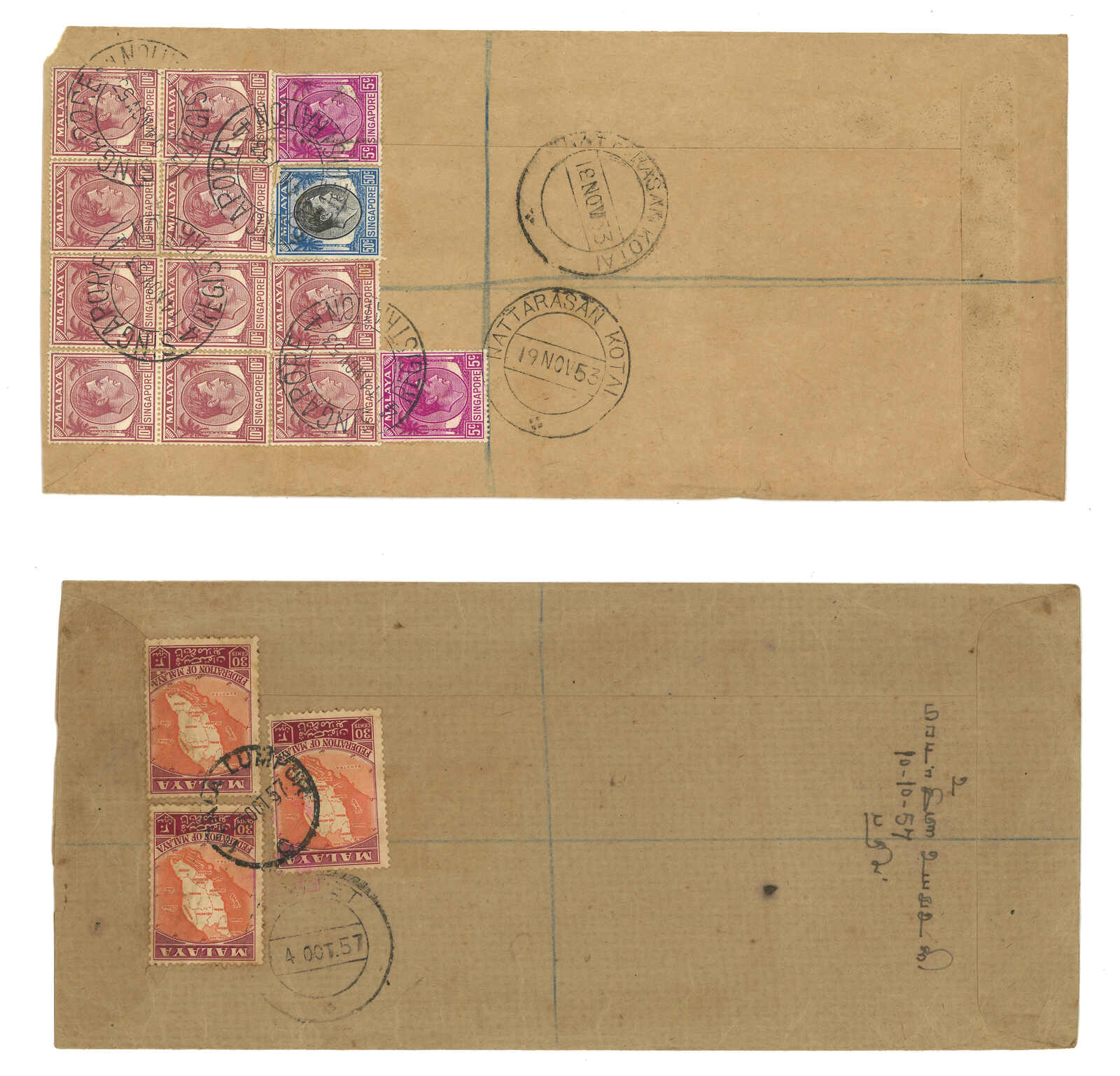 1930至1950年代一組五件自新加坡或吉隆坡寄國內外實寄封,貼馬來亞佐治六世或馬來亞聯邦票。請預覽。(Image 1)