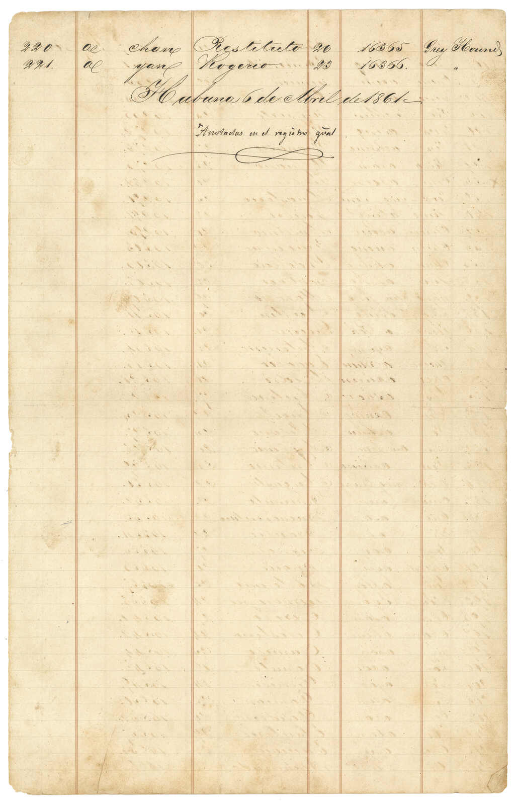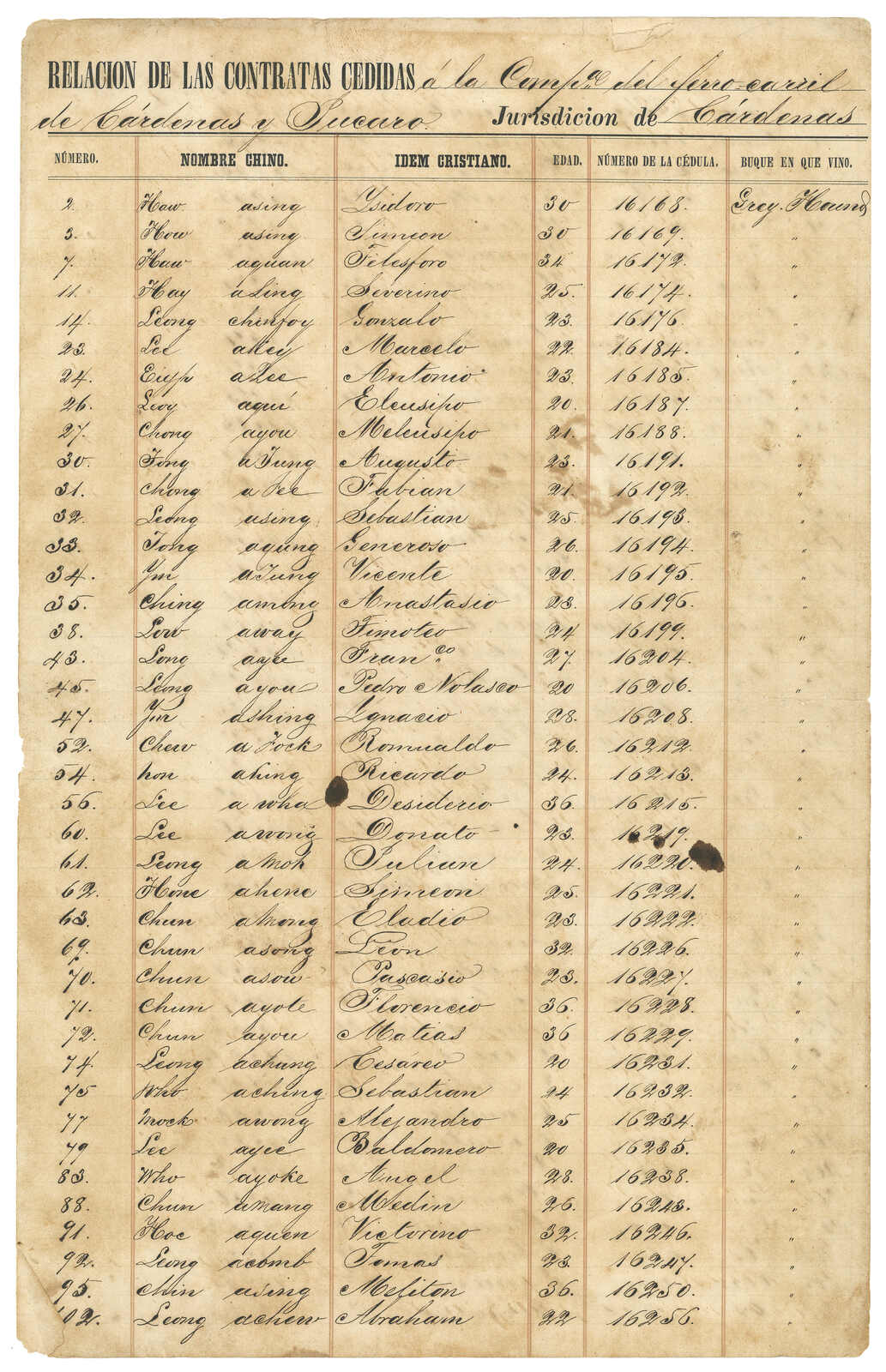 ca 1850s a pair of registries of Chinese workers in Cardenas, Cuba, listing out the name, age and number of the workers.