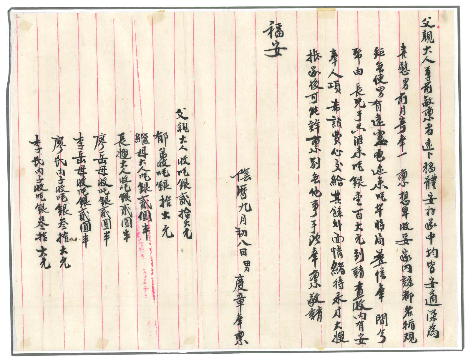 1941年馬尼拉寄晉江。僑批紅條封,背貼菲律賓票12分,銷馬尼拉日戳,旁鈐“漢昌信局”及“南寧列第X幫X號戳記,證明此封於戰時經南寧中轉,為少見之廣西省中轉例子。2008年版許茂春著《東南亞華人與僑批》第178頁3-37原件。(Image 1)