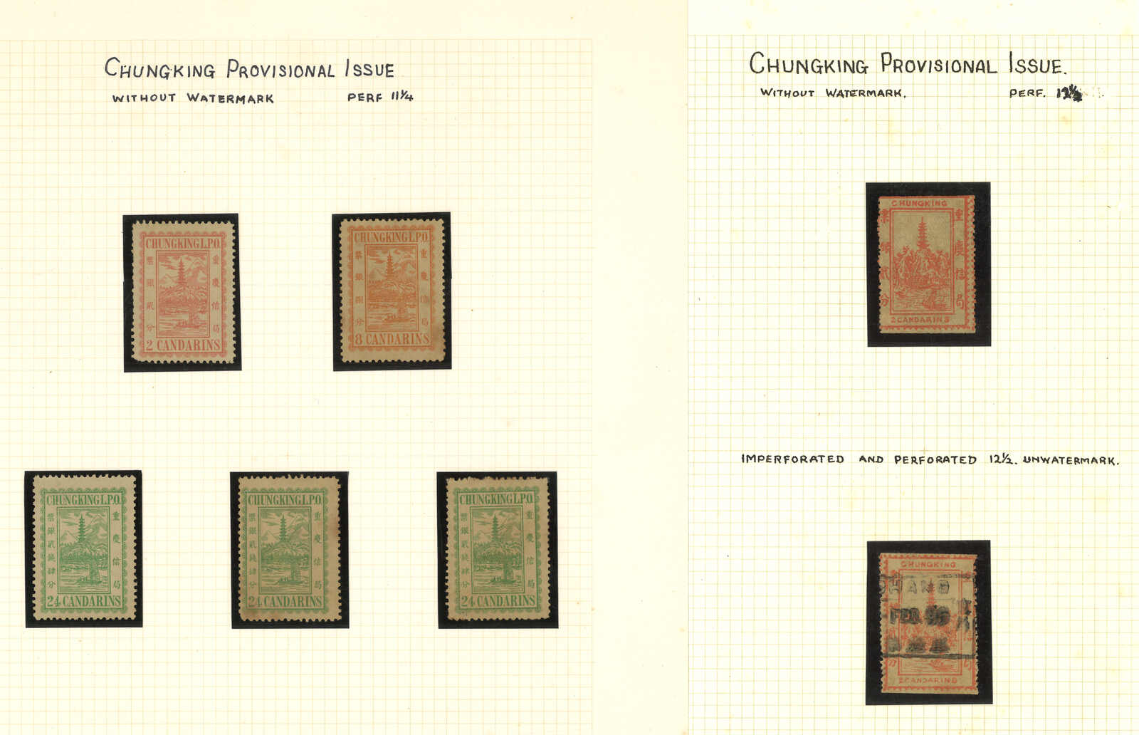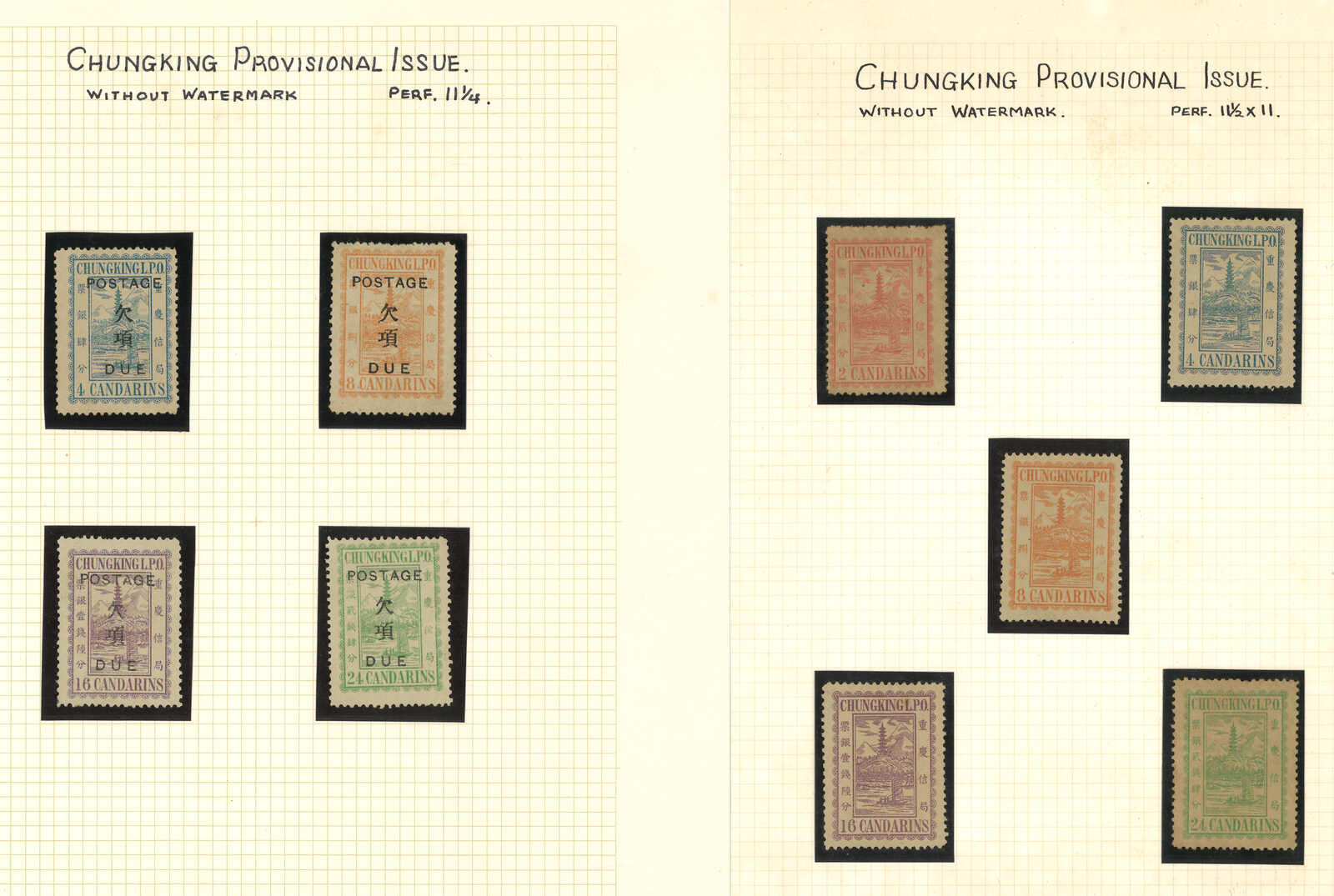 1893至1895年一組16枚重慶書信館新舊票,包含第一版、第二版及加蓋欠資票。大多為新。(Image 1) (Image 2)