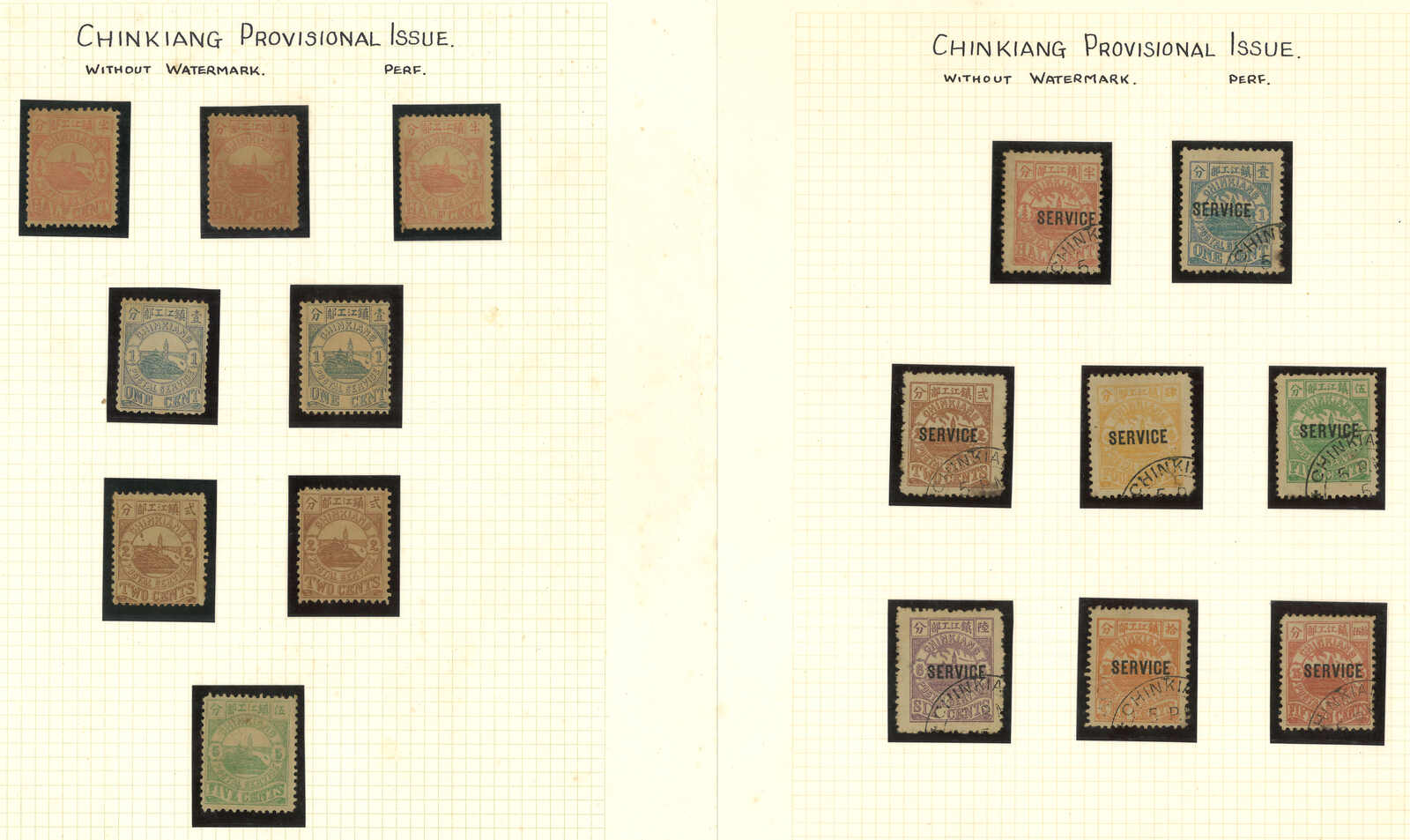 1894至1896年一組約23枚鎮江書信館新舊票,包含第一、第二版、加蓋欠資票及一套加蓋SERVICE票舊全。請預覽。(Image 1) (Image 2)
