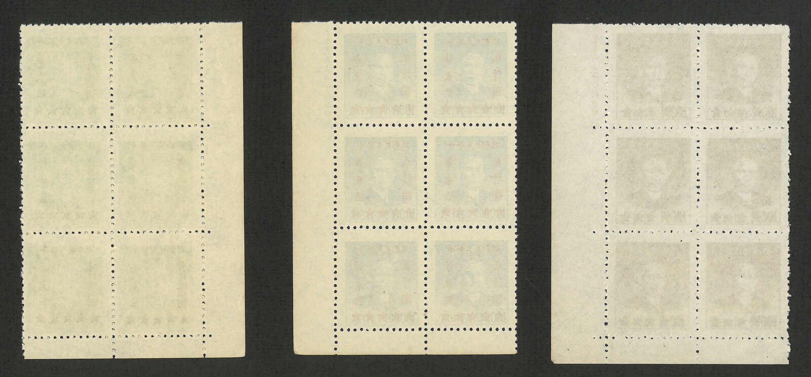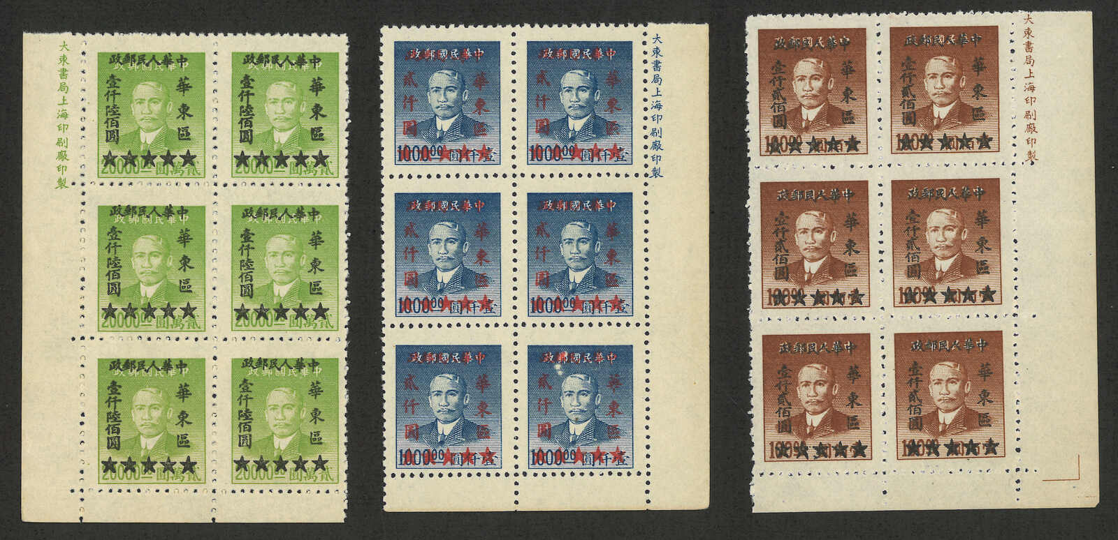 624 image1949 East China People's Post surch $1200, $1600 and $2000 on SYS in block of 6 with imprint margin (Yang EC460-462), MNH. Very Fine.