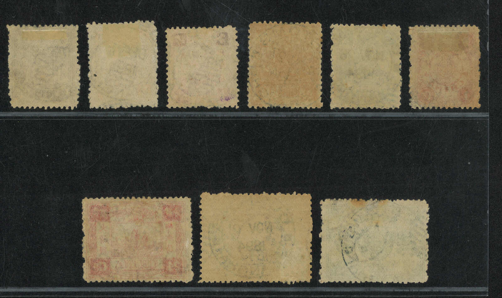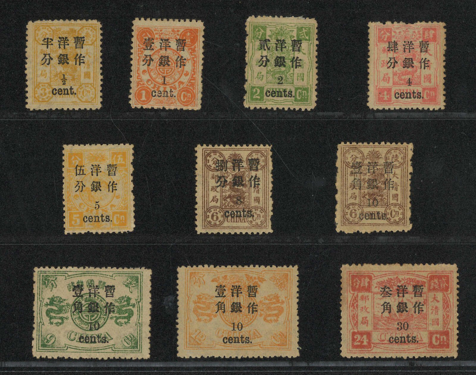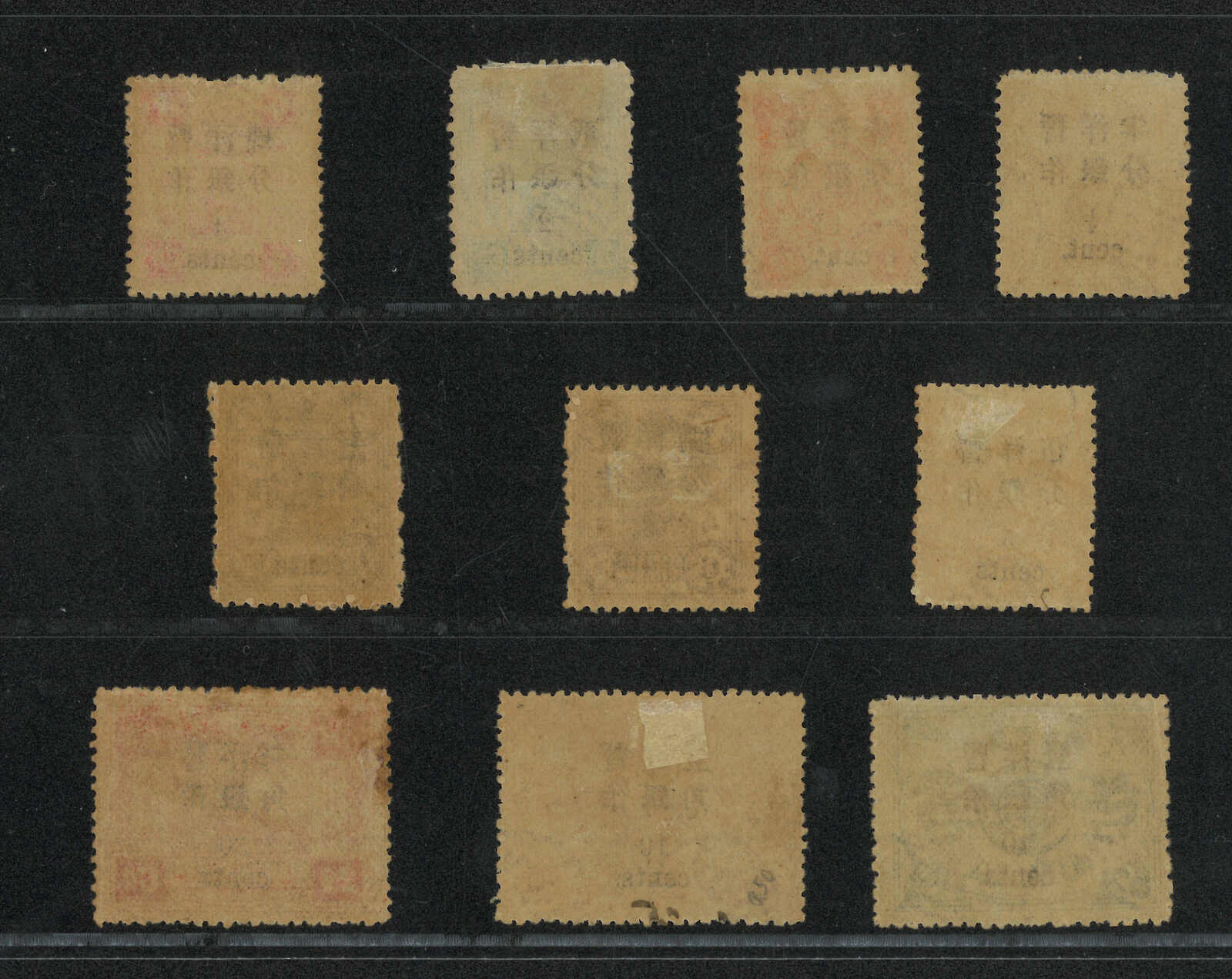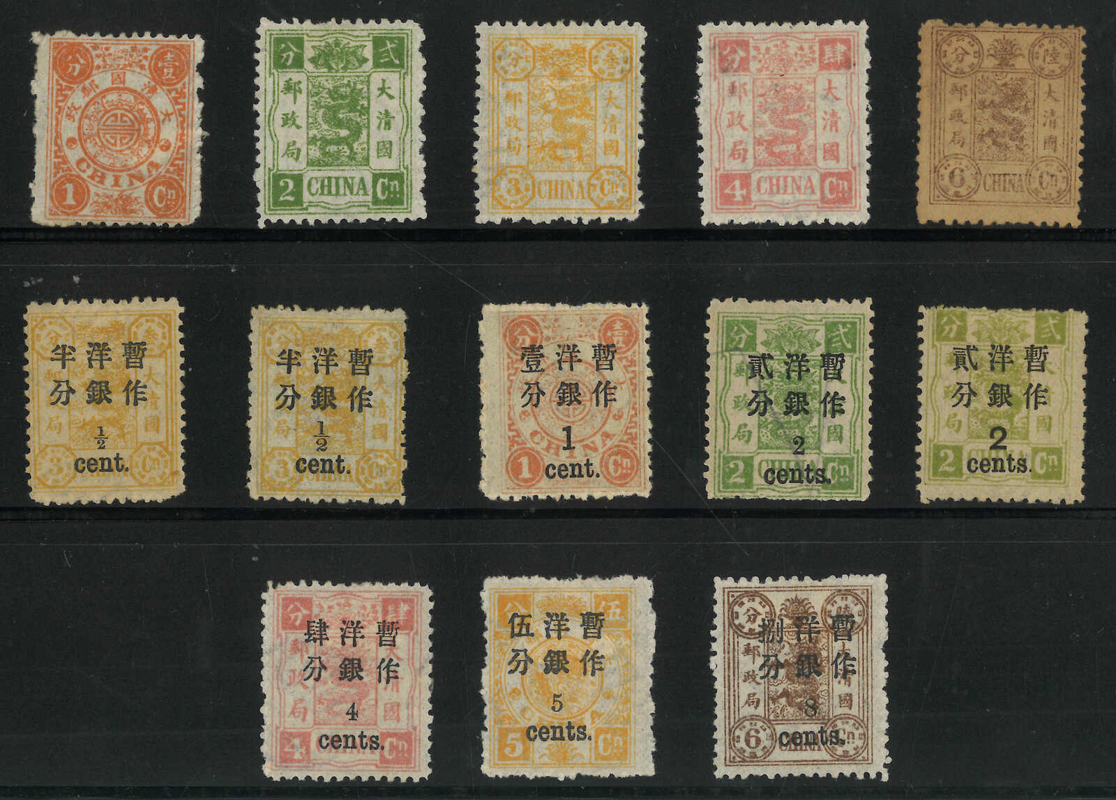 1894至1897年一組13枚慈壽及其加蓋票新,包含加蓋大字及小字。背貼(Image 1)