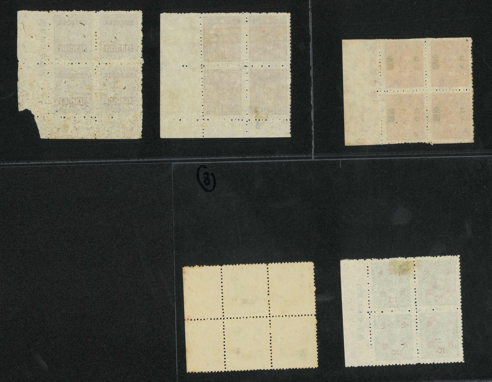 468 */bof image1944-1948 a collection of Paicheng Print SYS unovpt, surch CNC and surch Gold Yuan issues in block fo 4 with right imprint margin. MNH/MLH without gum as issued.