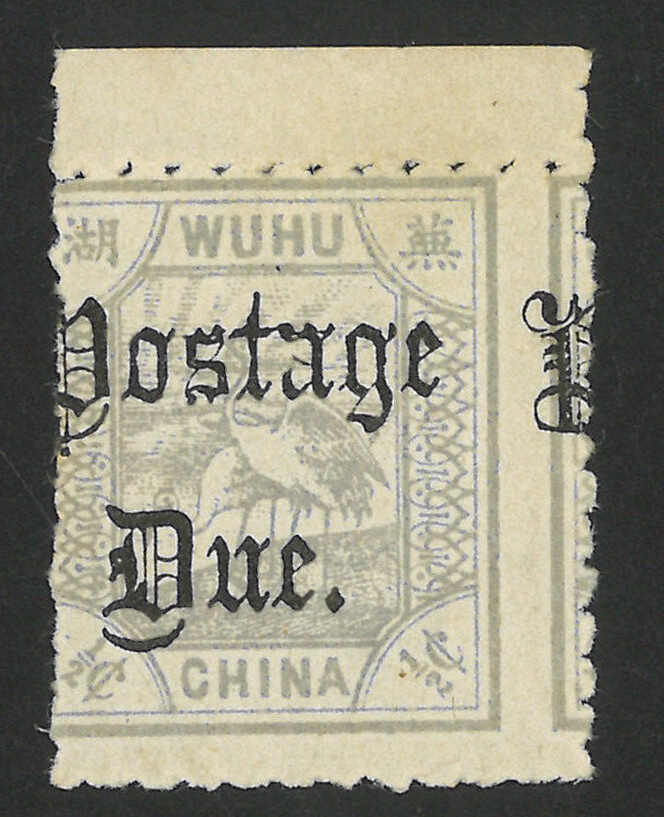 3276 * image1895 Wuhu LPO 2nd issue ovpt. Postage Due 1/2c in black, with perf shifted variety (Chan LWD12), MH.