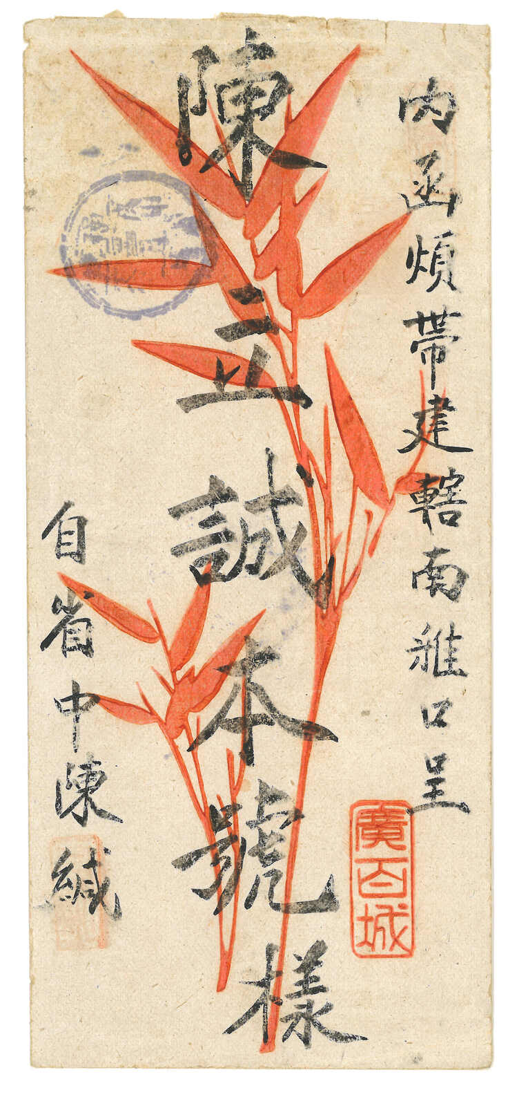 1908.4.18 福州寄南雅。中式封,背面鈐福建“十一”碑形戳。貼蟠龍1分,銷福建雙圈干支日戳。4.20經延平。4.21抵南雅。(Image 1)