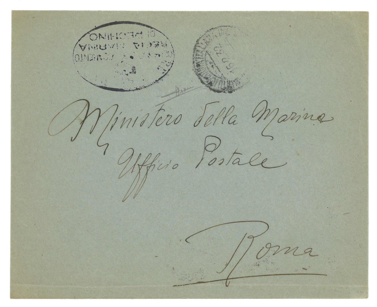 3168 cover image1932 (16 Feb) "R. Marina Italiana Pechino" cover to Roma, applied with very scarce "Distaccamento R. Marina Pechino/Comando" h.s. in violet on reverse. On front with scarce REGIE POSTE / COMANDO / REGIA MARINA DI PECHINO" oval h.s. in violet and another strike of faint Italian cds.