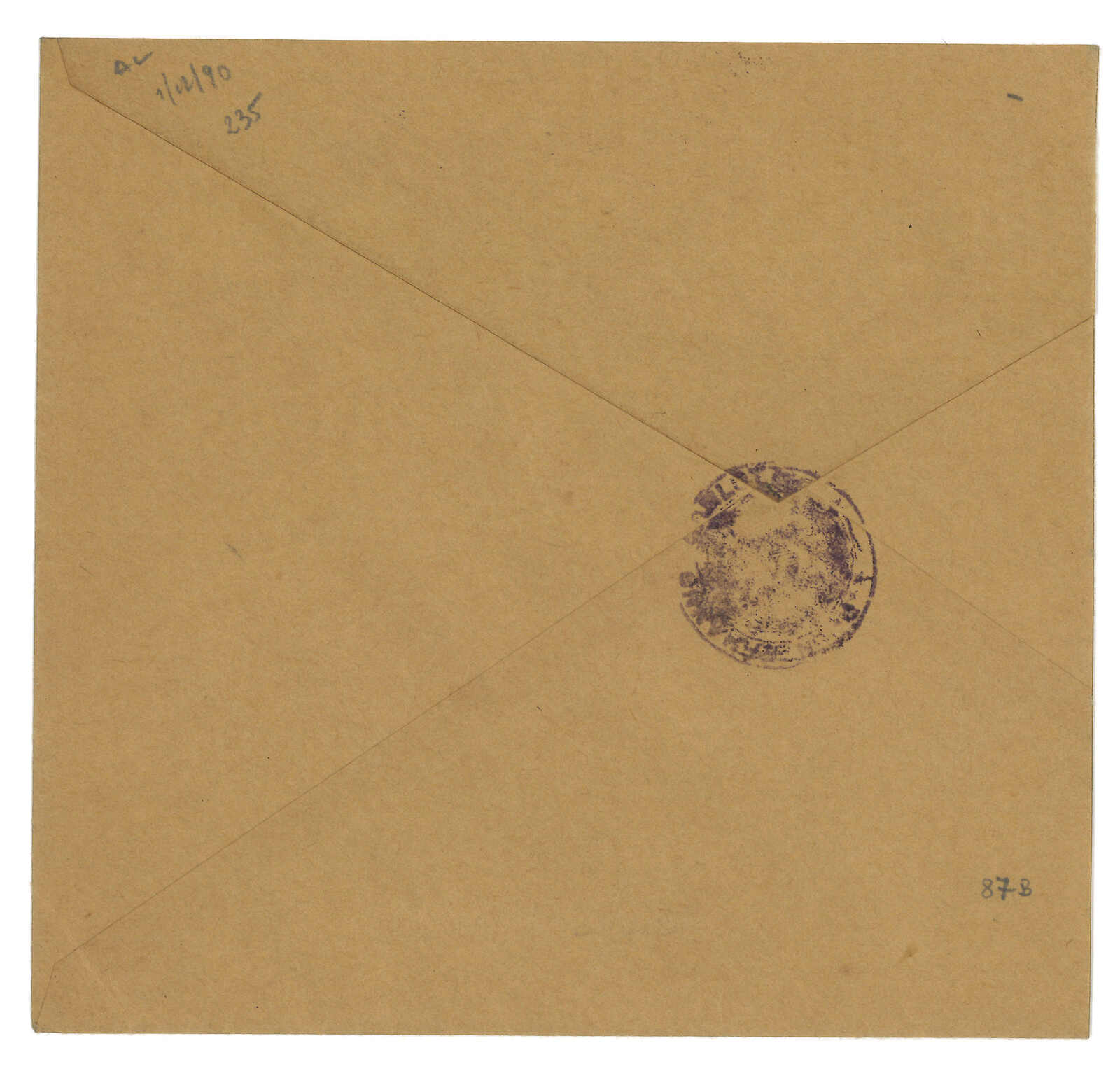 1932.1.11 意軍巡洋艦Libia號寄羅馬,無貼票,鈐稀罕之“REGIE POSTE / COMANDO / SUPERIORE NAVALE IN ESTREMO ORIENTE”海軍陸戰隊橢圓形戳記及Libia號日戳。背面蓋有“COMANDO SUP NAV IN E.O. / R.N. LIBIA”圓戳。2.2抵羅馬。(Image 1)