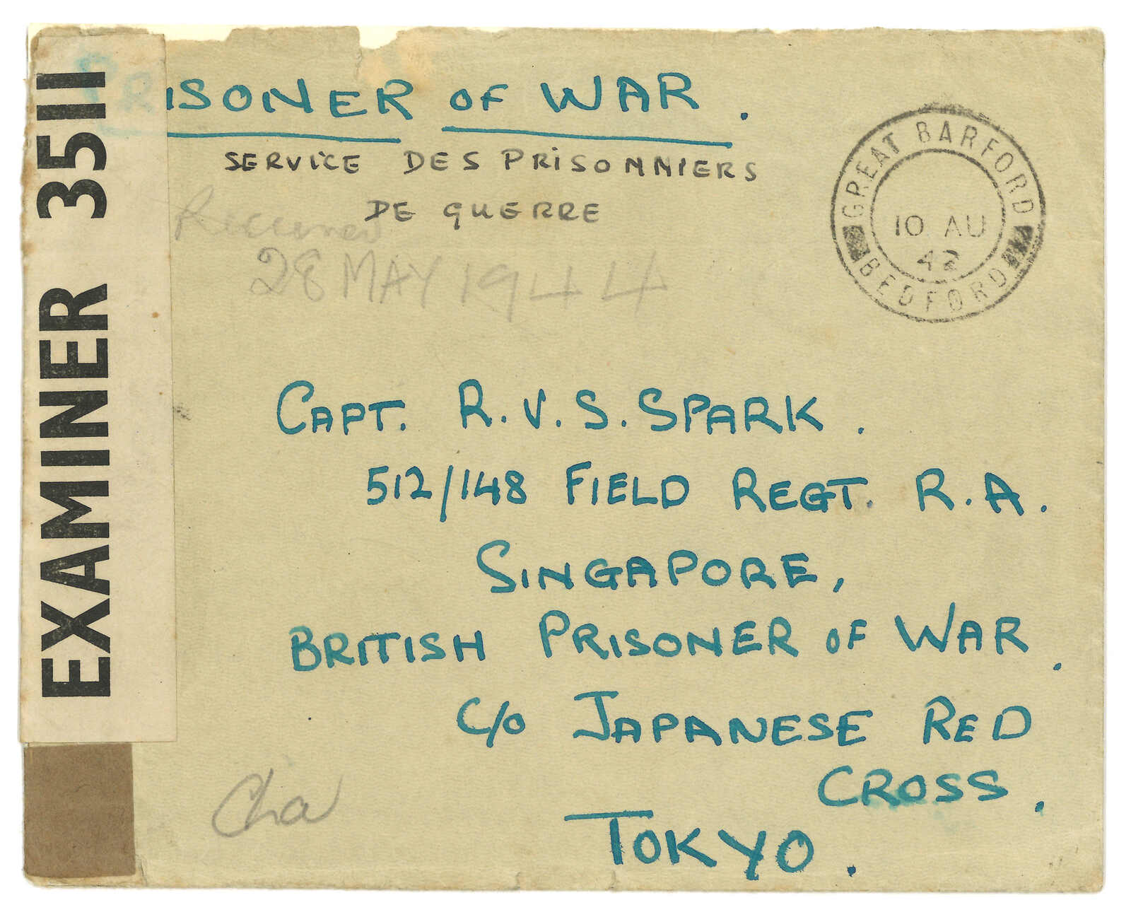 2103 cover image1942 (10 Aug) WWII POW cover from Britain to Japan, applied with Great Barford cds. Censored and resealed. No Japanese censor mark.
